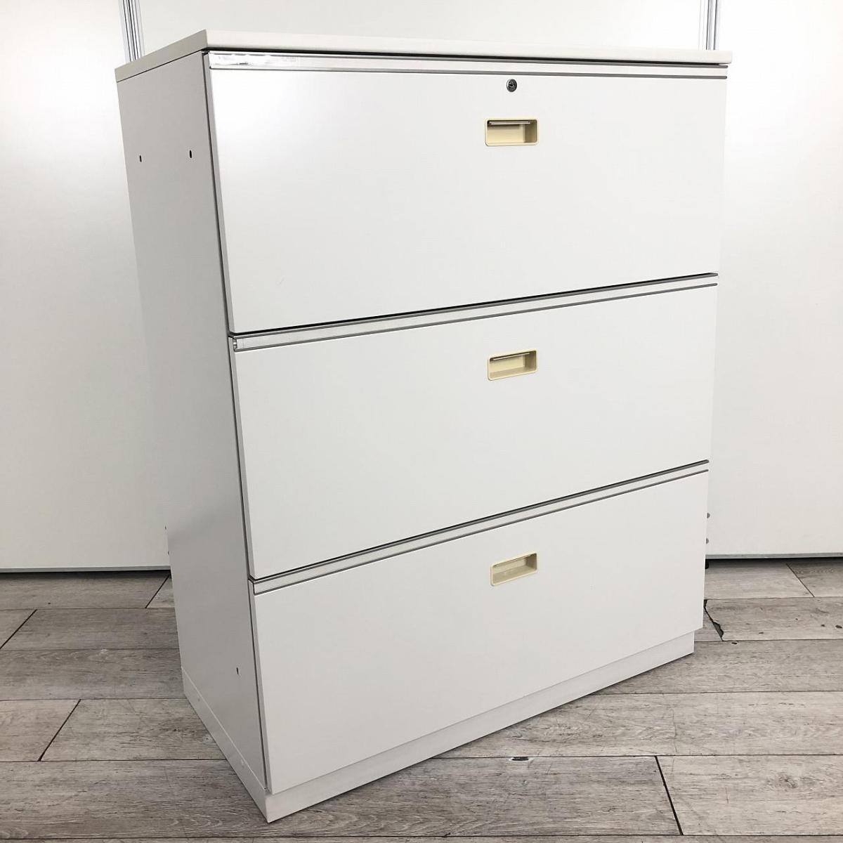 ■イトーキ(ITOKI)製 シンライン (THIN LINE) 3段ラテラル書庫 ローキャビネット ■ホワイト ■シリンダー錠