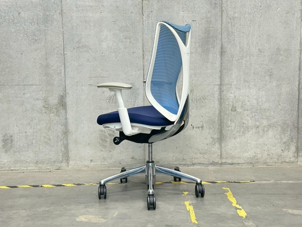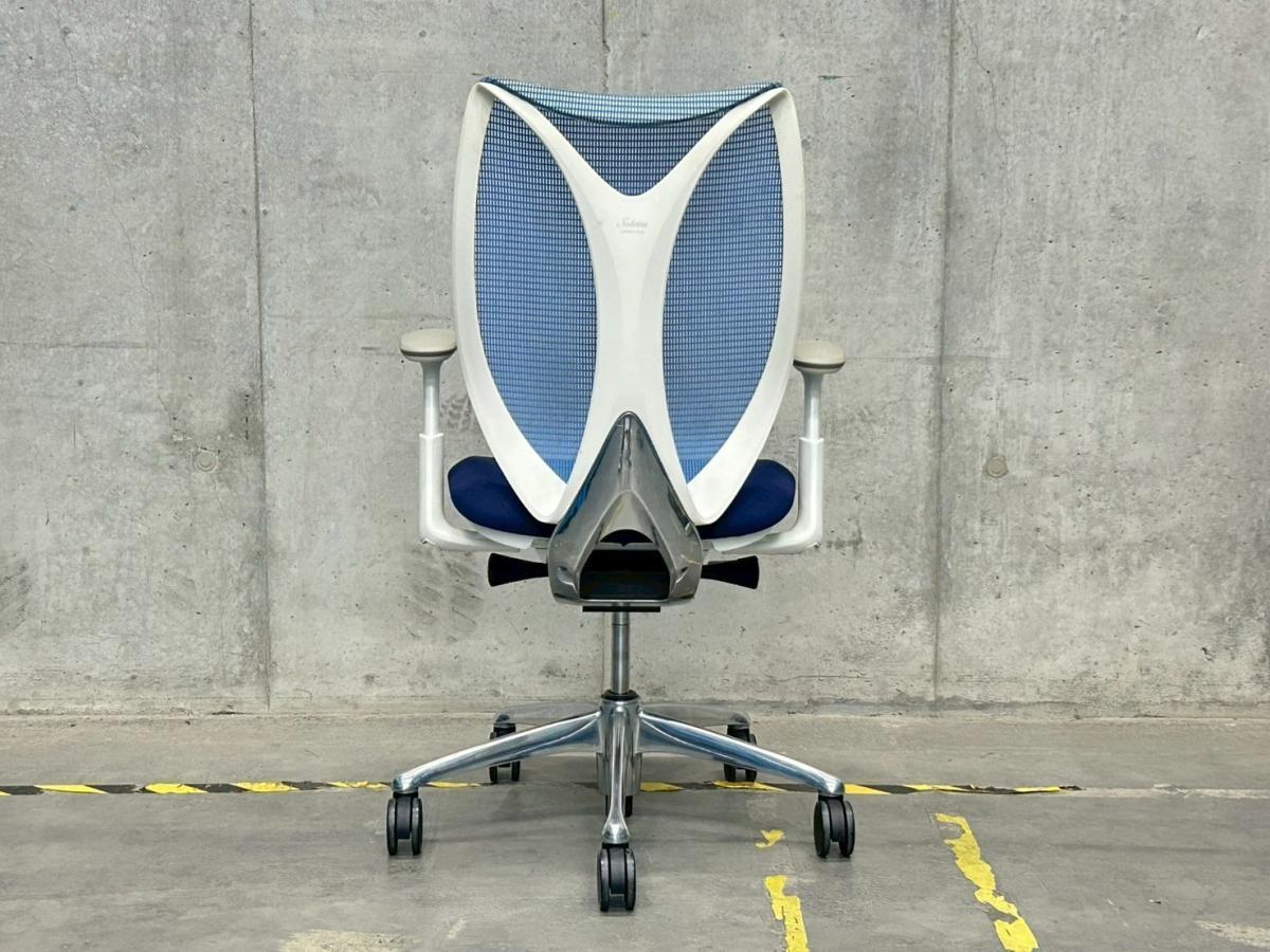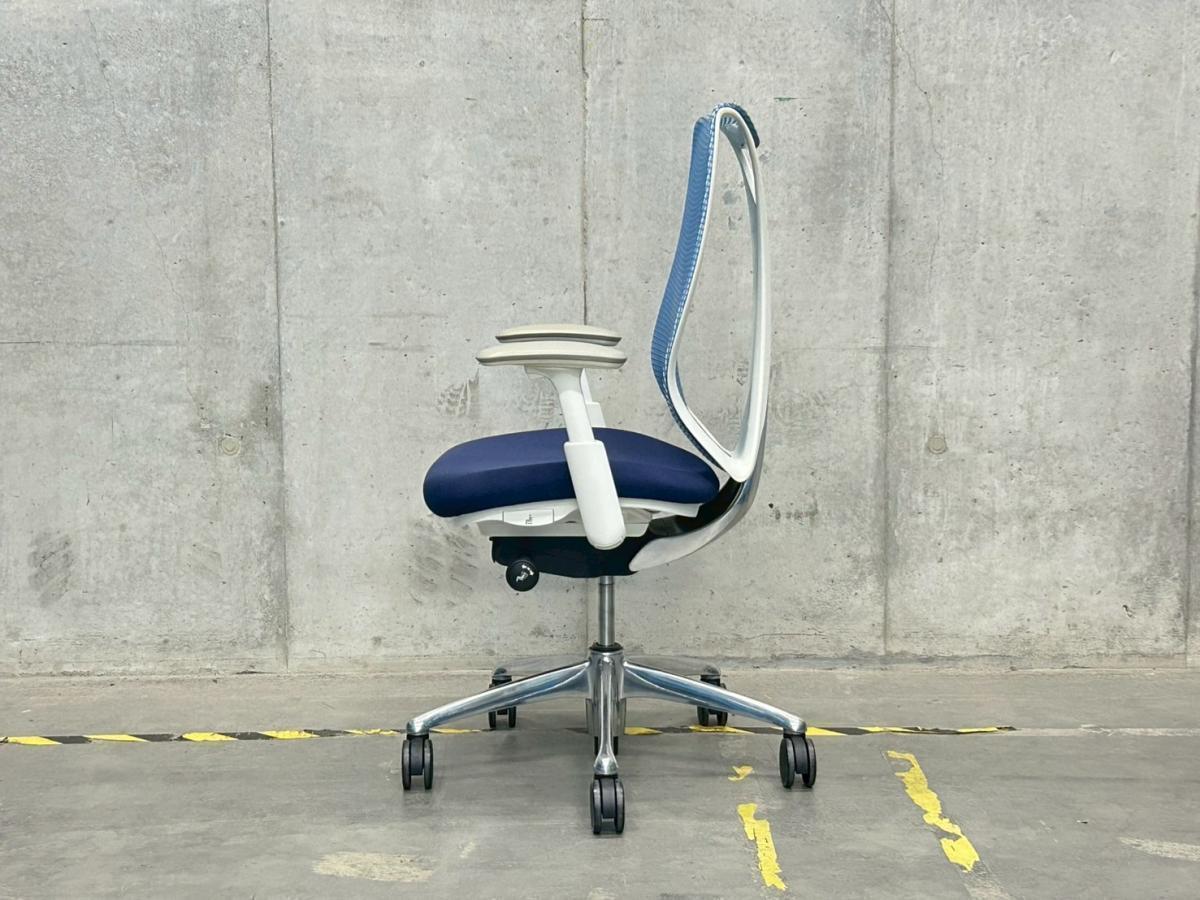 【移硬度クッションと前傾機能付きで腰に優しい!】■オカムラ(okamura)製 Sabrina(サブリナ) ハイバック 肘付き ■背面メッシュ ■可動肘 ■背アクアブルー × 座ダークブルー × ホワイトシェル ※サテライト店舗倉庫撮影画像※【管理番号:A01014865】【ID】サーキュラーバリューCO2削減量の算出について
