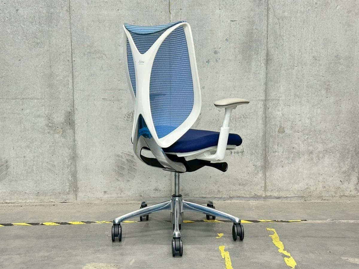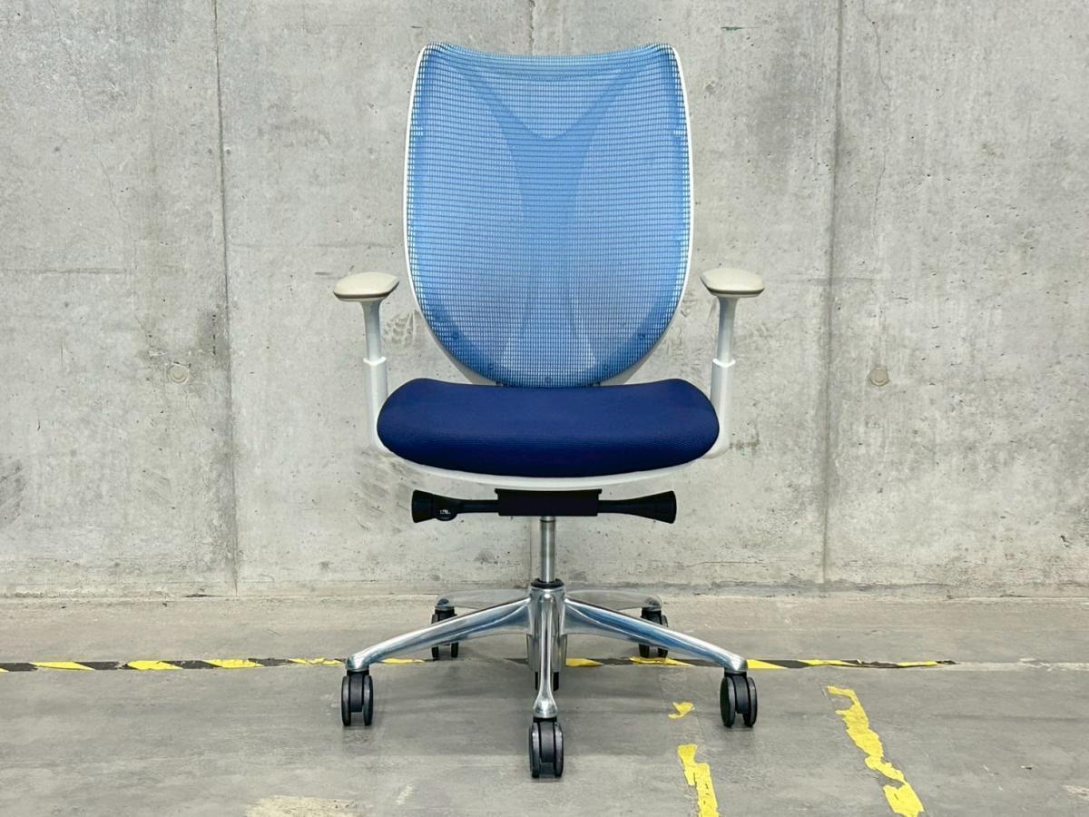 【在庫セール品】【定価約16万円】【前傾チルト付!流れるような美しいフォルムの最高級メッシュチェア!】■オカムラ(okamura)製 Sabrina(サブリナ) ハイバック 肘付き ■可動肘 ■背面メッシュ:アクアブルー/座面:ブルー×ホワイトフレーム【AD】