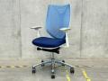 【T11】【T9】【K7】【商品入替のため、残り5脚限り】オカムラ製 サブリナシリーズ アクアブルー 背もたれ/アクアブルーx座面/ダークブルーのツートンカラー ホワイトフレーム アジャストアーム※可動肘 前傾チルト付 流れるような美しいフォルムの最高級メッシュチェア! 肘付きハイバックチェア!!