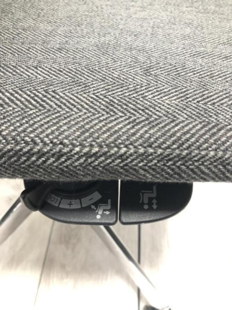 【スタイリッシュさが人気のオフィスチェア!】■オカムラ(okamura)製 モード(mode)シリーズ 肘付ハイバック クロスバック ■ダークグレー ※肘カバー無しとなります。【入替セールにつき30%OFF!】- つくば店