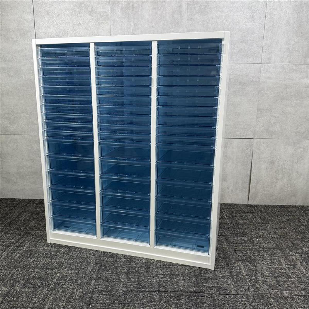 【書類・備品整理の必需品!】【珍しいクリトレが入荷!3列×深型9段タイプ!】■コクヨ(KOKUYO)製 エディア(EDIA)シリーズ クリスタルトレイ ローキャビネット H980㎜ ■3列×深型9段 ■ベース付 ■色:ホワイト