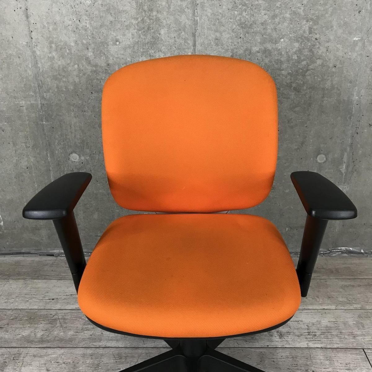 【シンプルなのに上質・座る人を選ばないフィット感!】■プラス製 (PLUS) プリセア (Presea) ローバック 肘付き ■可動肘 ■オレンジ × シェルホワイト / 脚・肘ブラック- 新大阪店