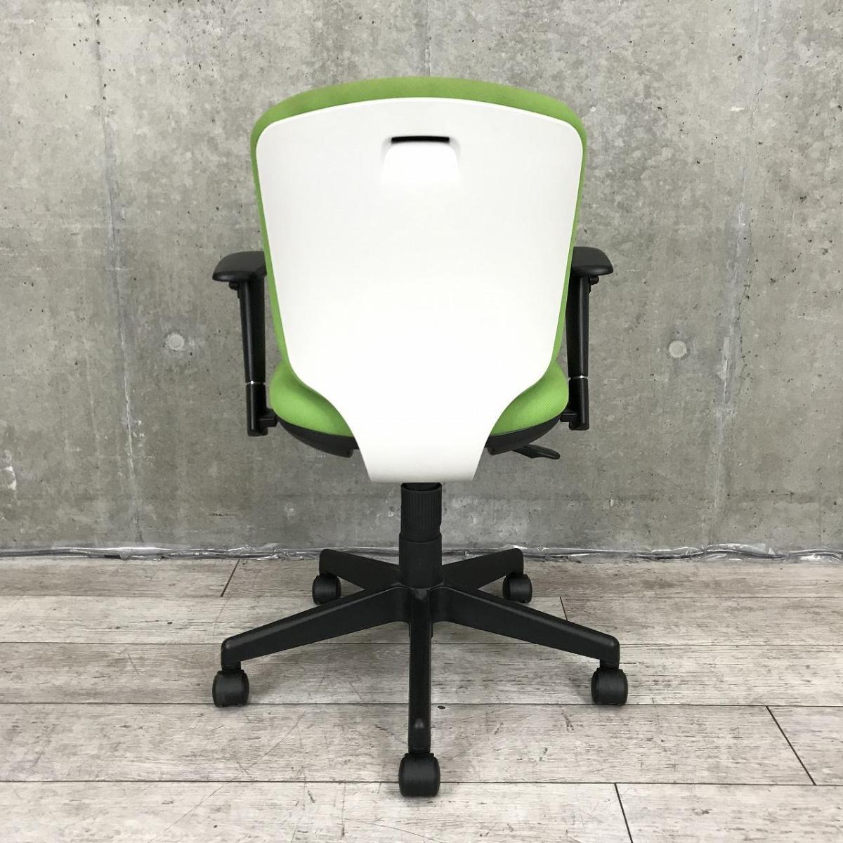 【シンプルなのに上質・座る人を選ばないフィット感!】■プラス製 (PLUS) プリセア (Presea) ローバック 肘付き ■可動肘 ■グリーン × シェルホワイト / 脚・肘ブラック- 新大阪店