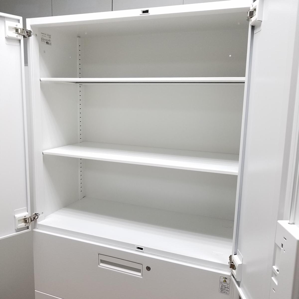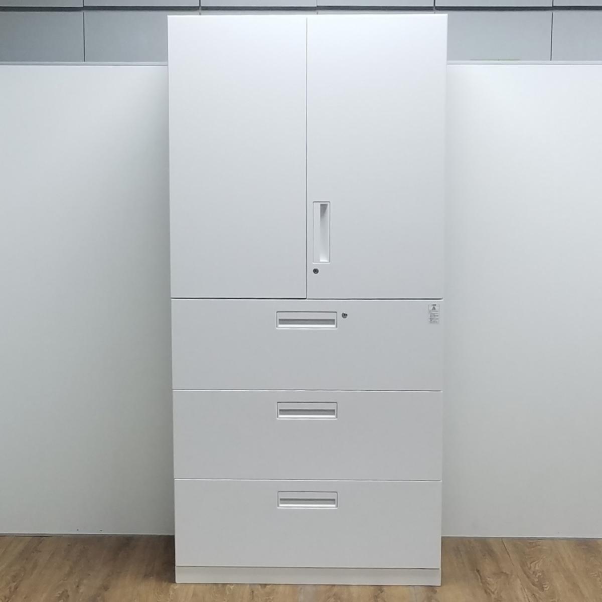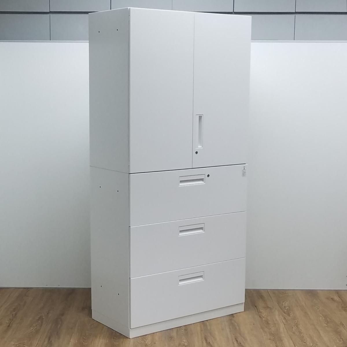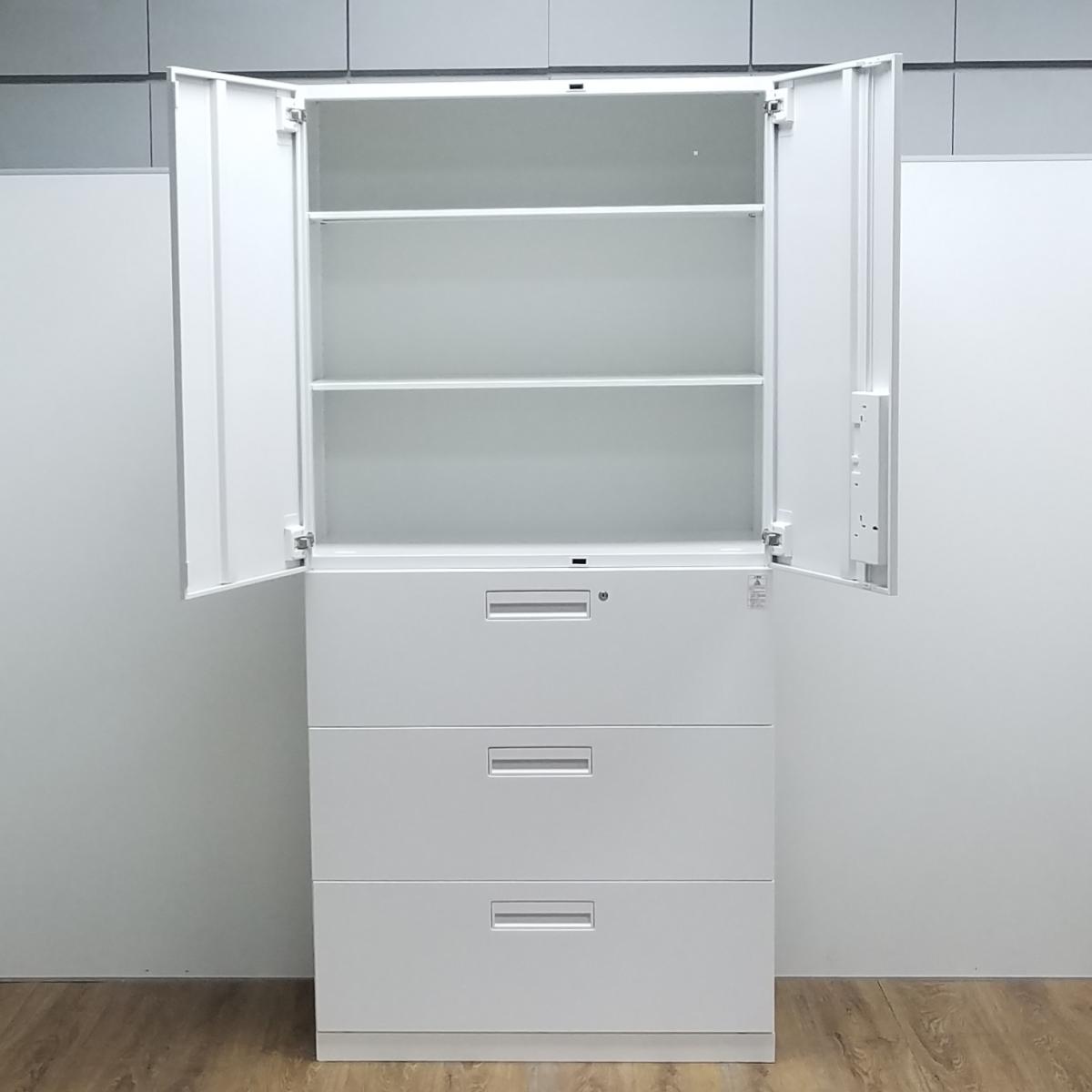 【収納の定番のエディアシリーズ!収納量抜群!観音開き+引き出しタイプのキャビネットセット!】■コクヨ(KOKUYO)製 エディアシリーズ ハイキャビネット 両開き+3段ラテラル ■ホワイト ■シリンダー錠- 京都東寺店