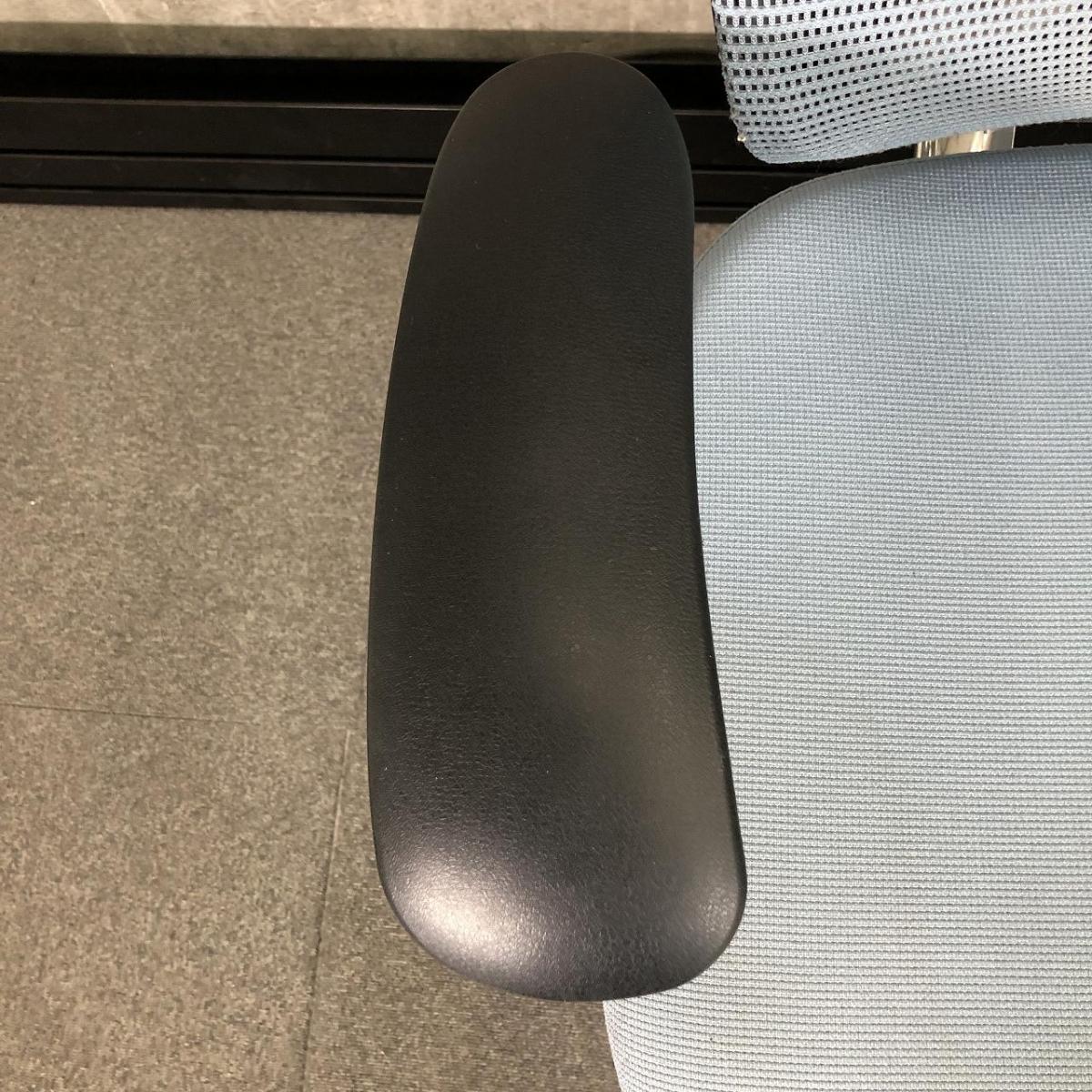 【K9】【商品入替のため、残り7脚限り】【座面に使用感の汚れあり】オカムラ製 コンテッサシリーズ ライトブルー 背面メッシュ ランバーサポート付 可動肘 世界で認められた革新的タスクチェア! 人間工学に基づいた快適な座り心地を実現! 肘付きハイバックチェア!!