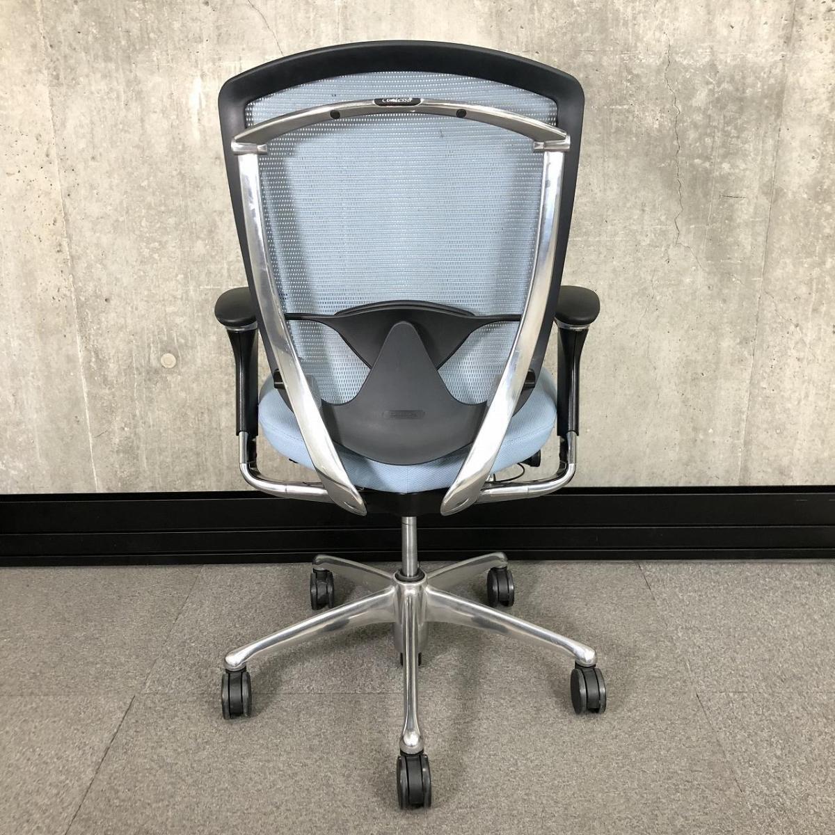 【王道チェア!】■オカムラ製(okamura) コンテッサ (Contessa) ハイバック 肘付き ■ライトブルー ■背面メッシュ ■ランバーサポート付 ■可動肘