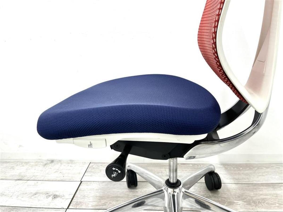 【来店限定キャンペーン】【人間工学から生まれた最先端のワーキングチェア!】■オカムラ サブリナチェア 肘掛け無 背:レッド / 座:ダークブルー ■流れるような美しいフォルム!姿勢に心地よくフィット!- なんば日本橋店
