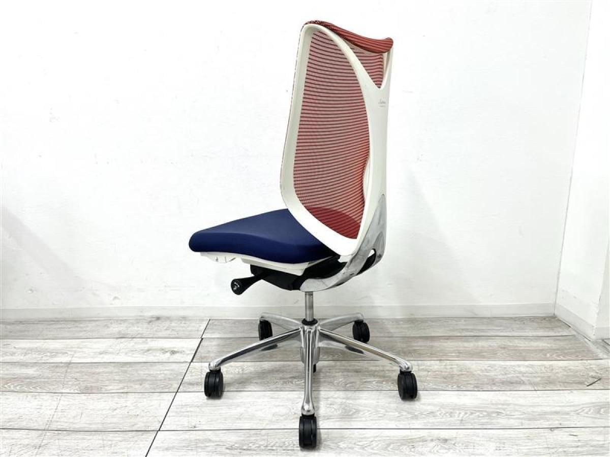 【人間工学から生まれた最先端のワーキングチェア!】■オカムラ サブリナチェア 肘掛け無 背:レッド / 座:ダークブルー ■流れるような美しいフォルム!姿勢に心地よくフィット!【K10】