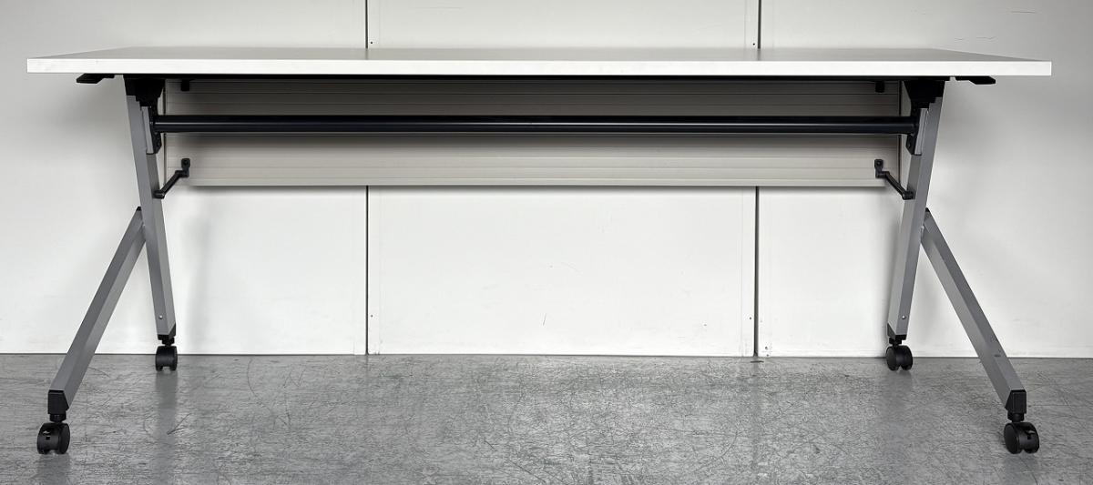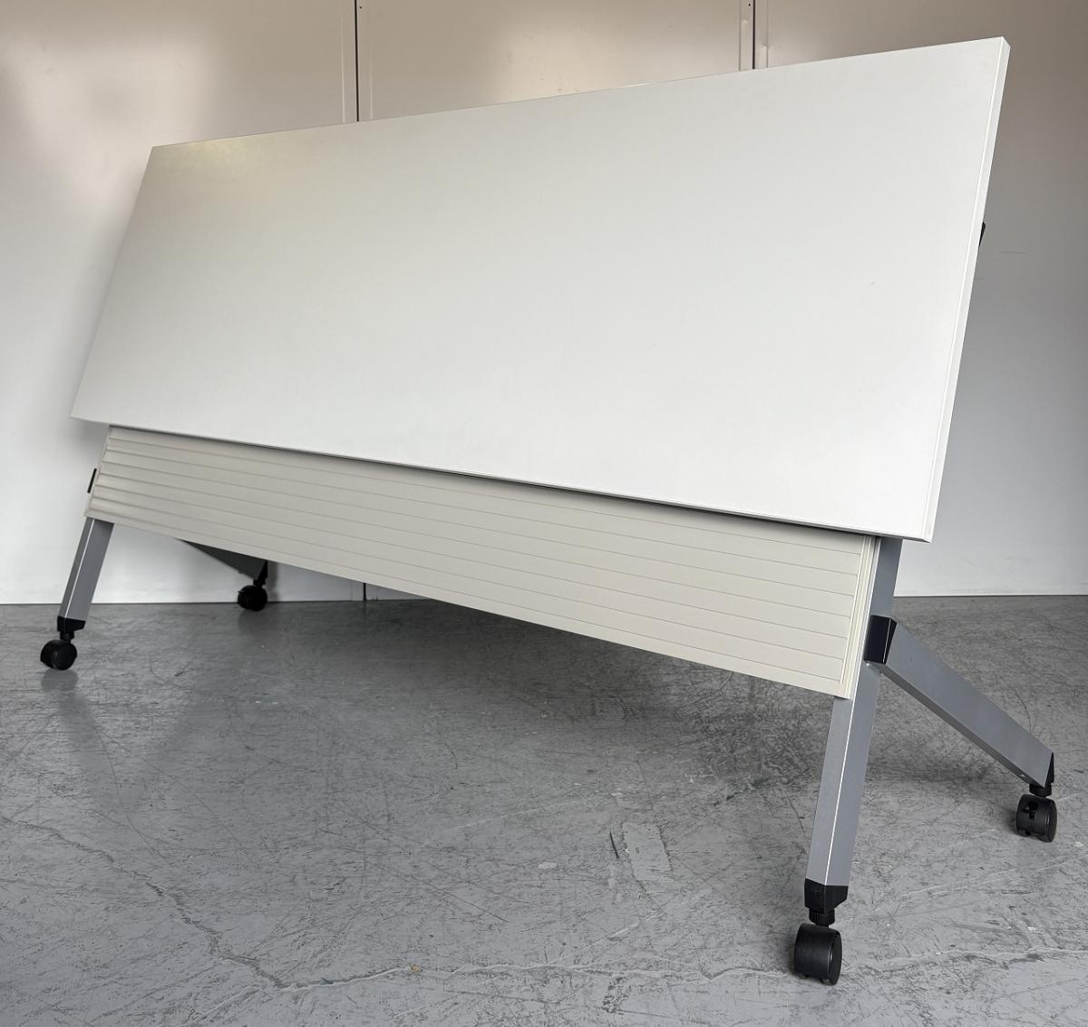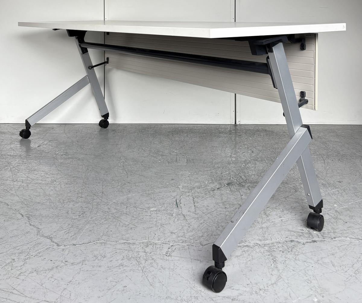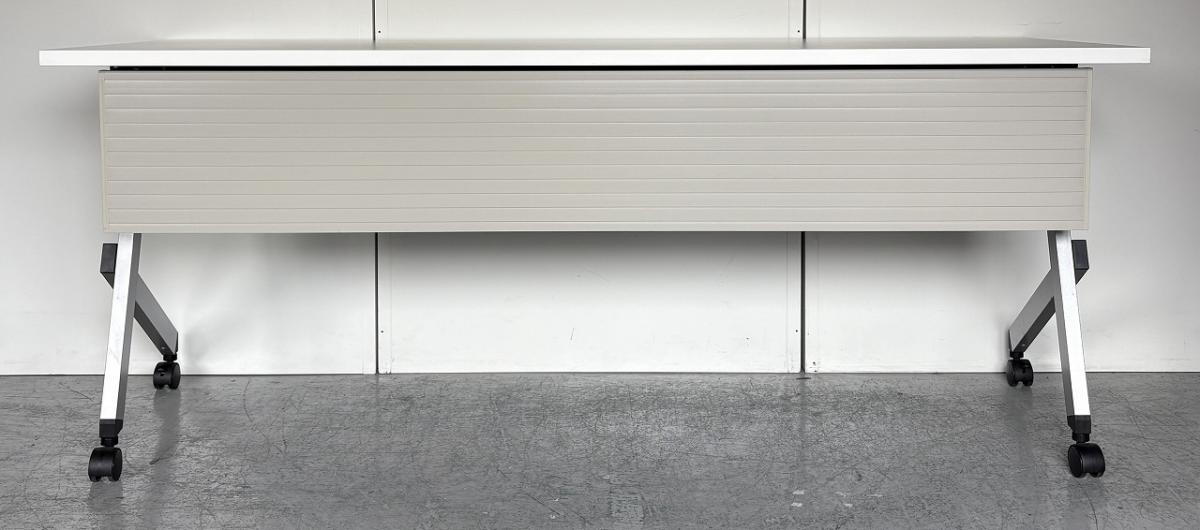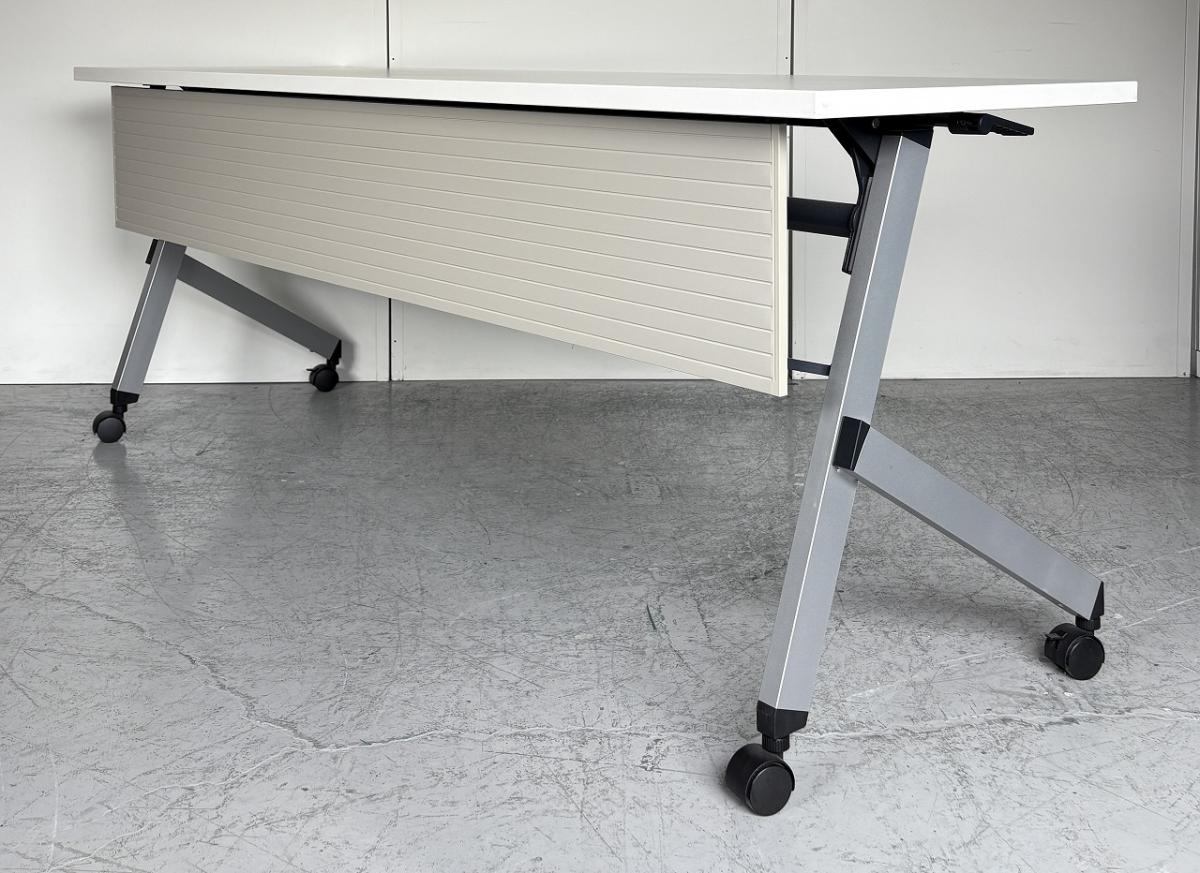 使い勝手抜群!天板を跳ね上げて収納ができるスタックテーブルが入荷!幕板付きで安心! ◆内田洋行/プラッテ(Platte)/ホワイト 横幅1500mm(奥行450mm)フラップテーブル