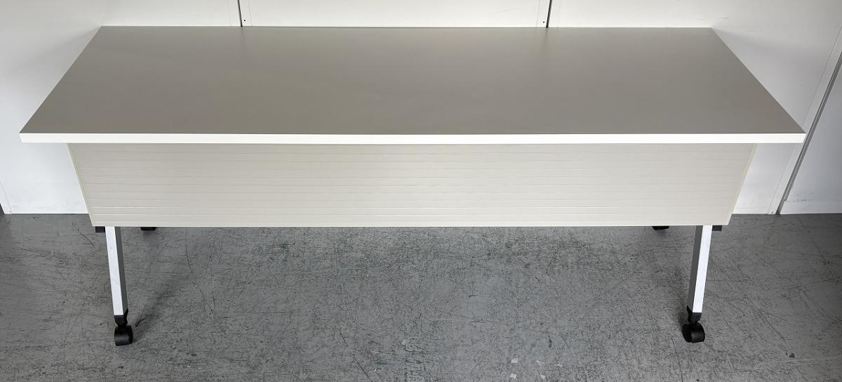 【2~3名様で使えるスタックテーブル入荷!奥行き600㎜で広々!キャスター付きで移動も楽々!】■ウチダ(UTHIDA)製 プラッテ(PLATTE) サイドスタックテーブル ■幅1800×奥行600㎜ ■幕板付き ■ピュアホワイト【天板跳ね上げ式でコンパクトに収納!】在庫がある店舗一覧
