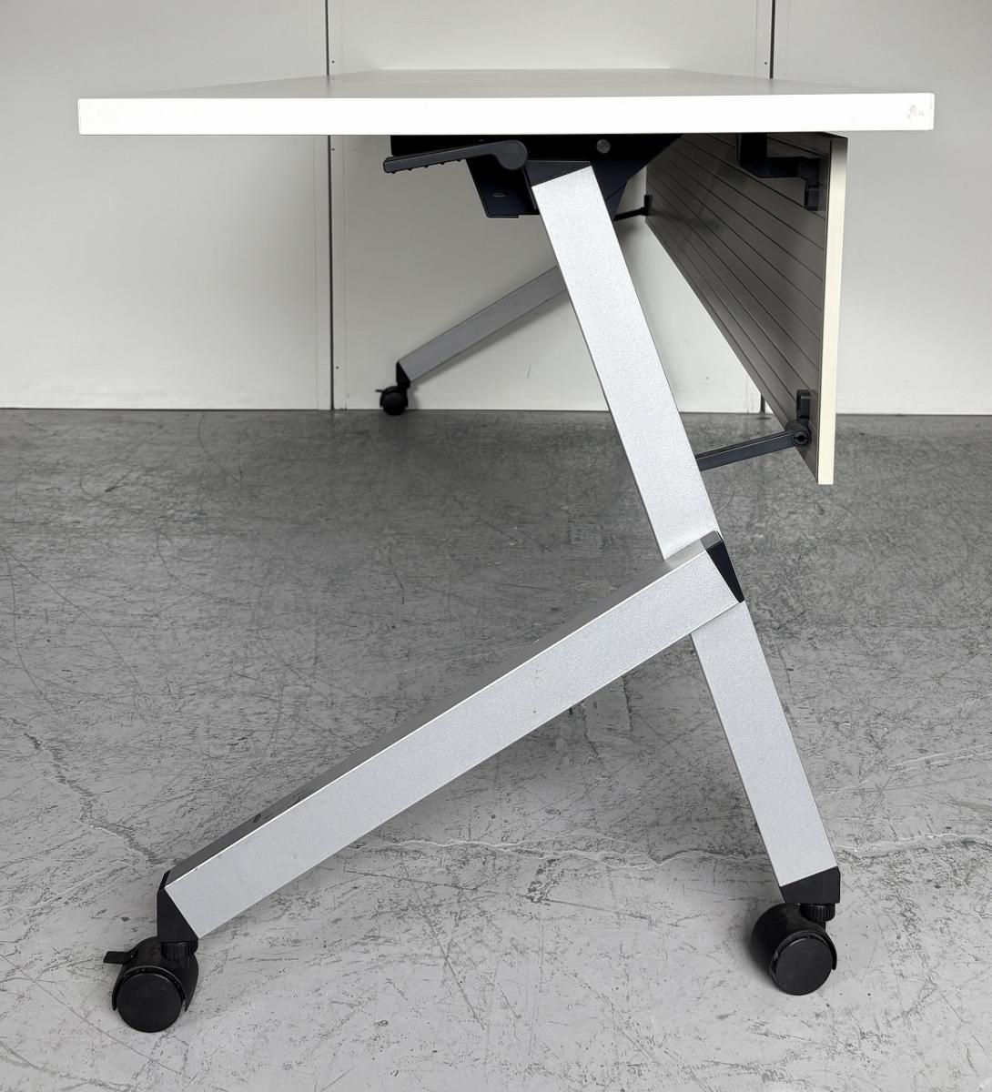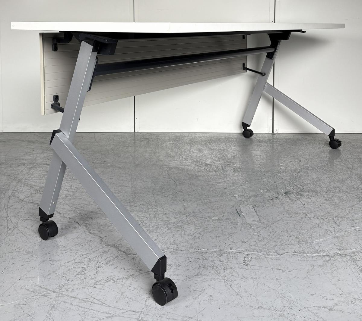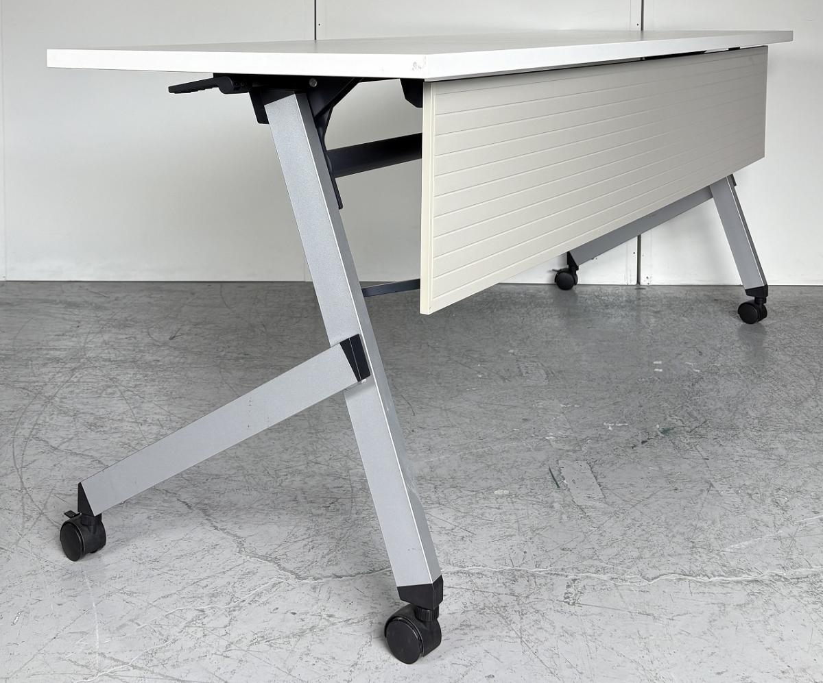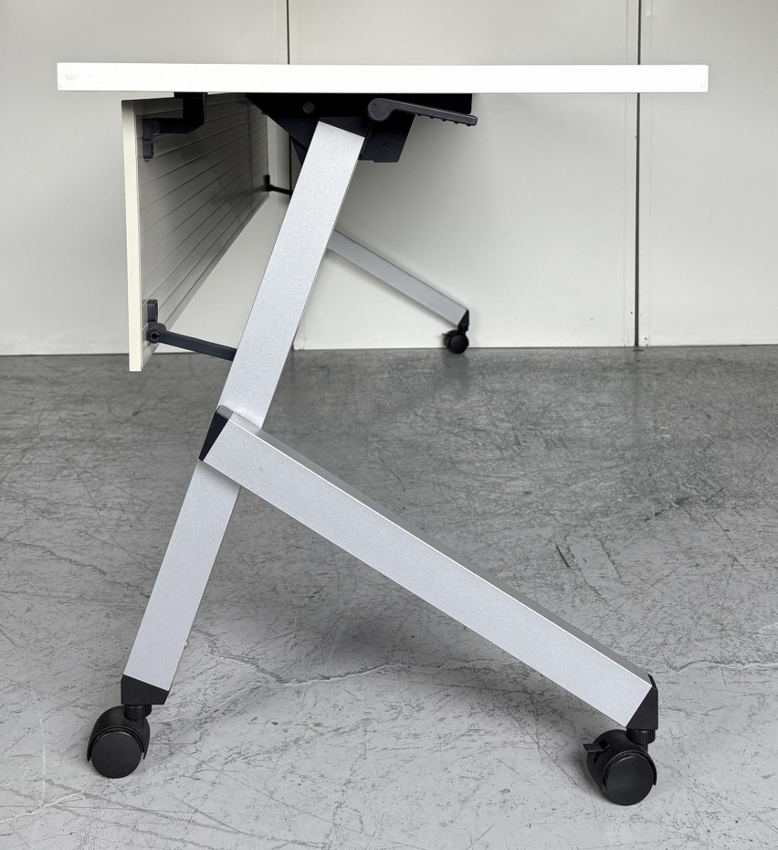 【折りたたみ収納が秀逸!スタイリッシュなデザインで高品質!】■ウチダ(UCHIDA)製 プラッテ(PLATTE)シリーズ サイドスタックテーブル W1500×D450㎜ ■キャスター付 ■ホワイト