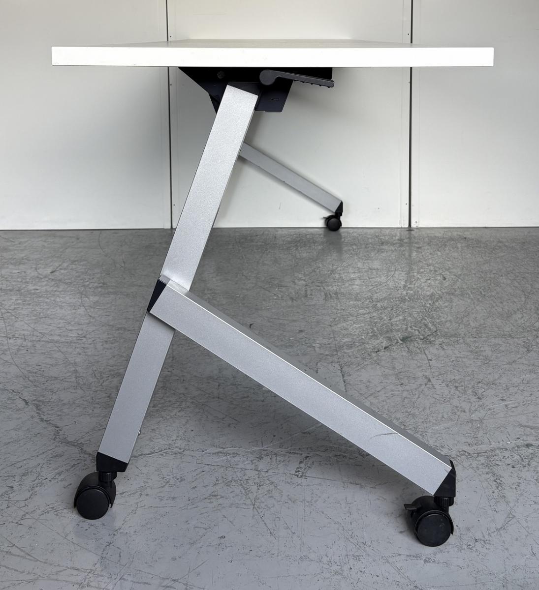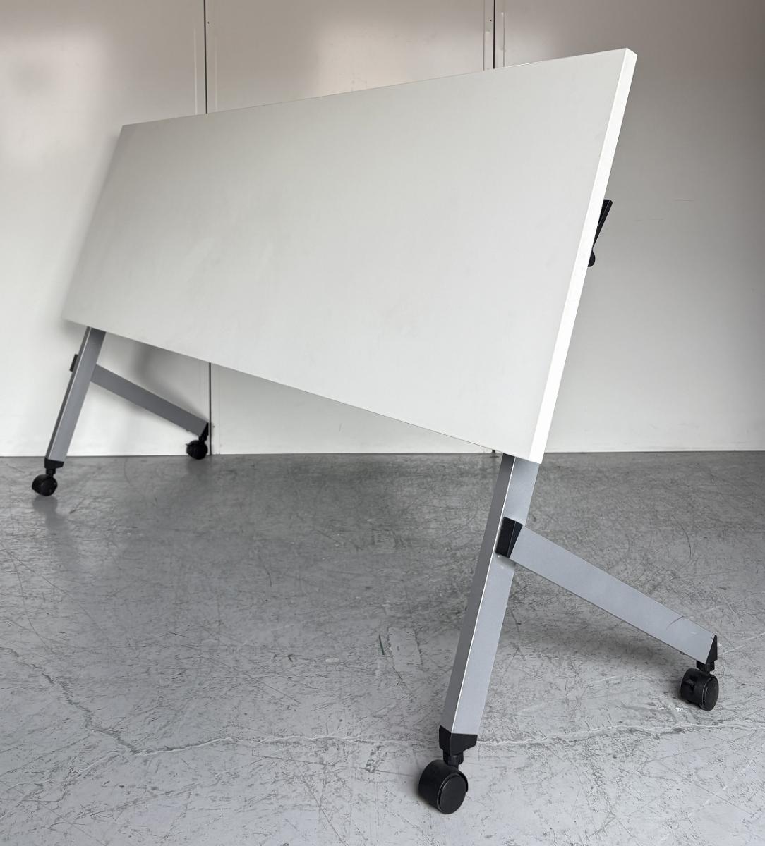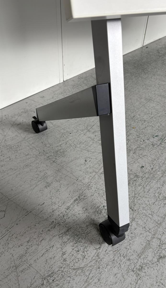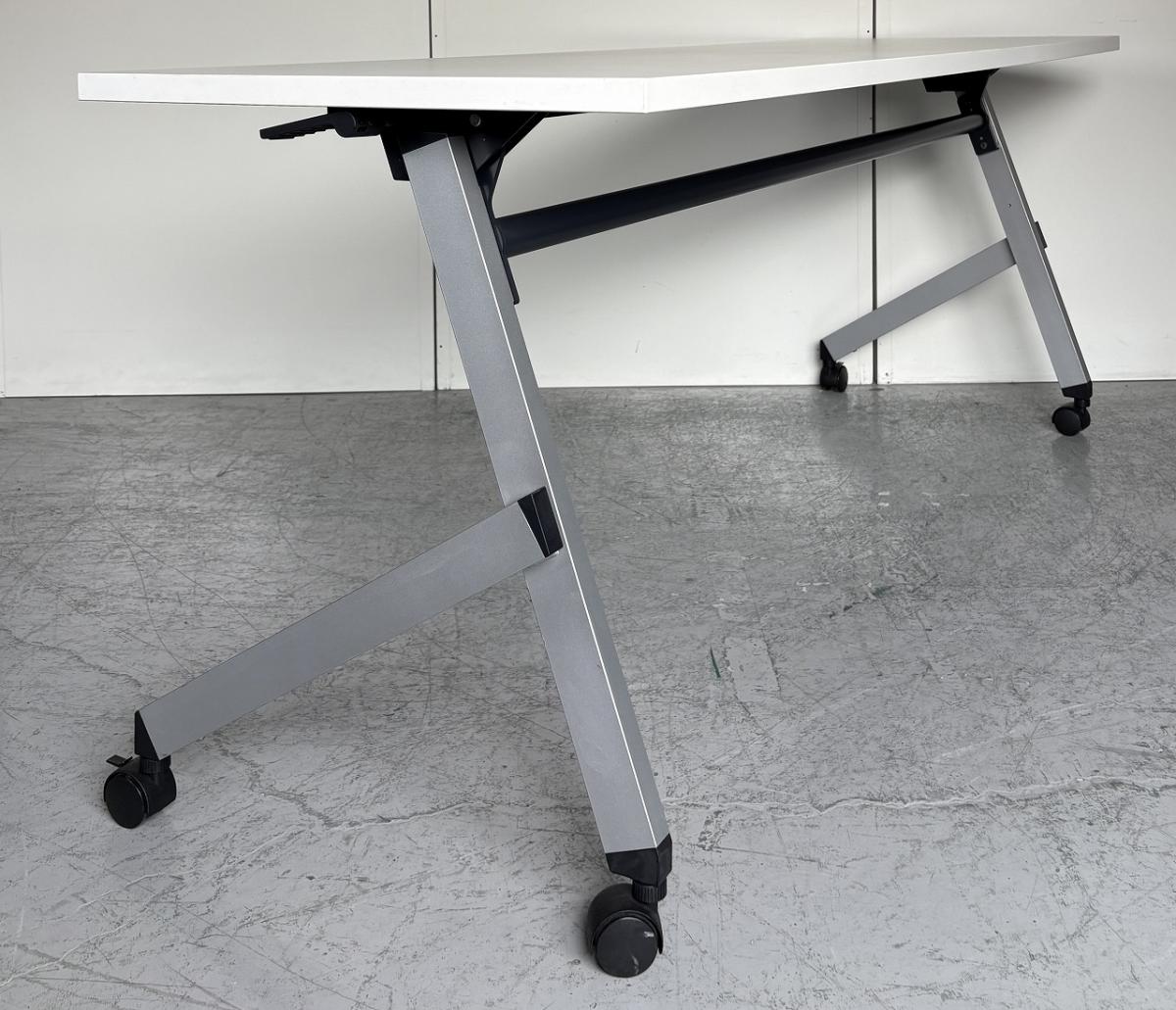 【2~3名様で使えるスタックテーブル入荷!奥行き600㎜で広々!キャスター付きで移動も楽々!】■ウチダ(UTHIDA)製 プラッテ(PLATTE) サイドスタックテーブル ■幅1800×奥行600㎜ ■ピュアホワイト【天板跳ね上げ式でコンパクトに収納!】 オフィスバスターズ東大阪店 幕板無 中古在庫がある店舗一覧