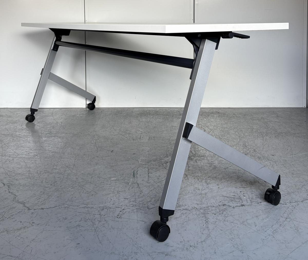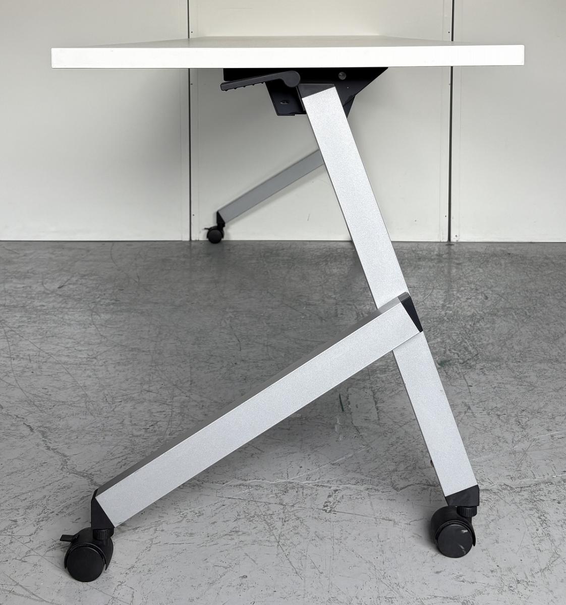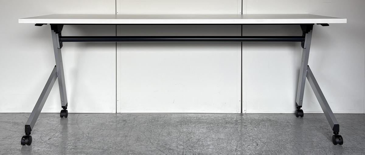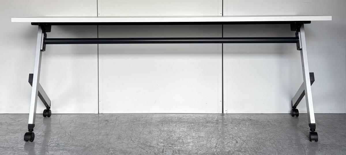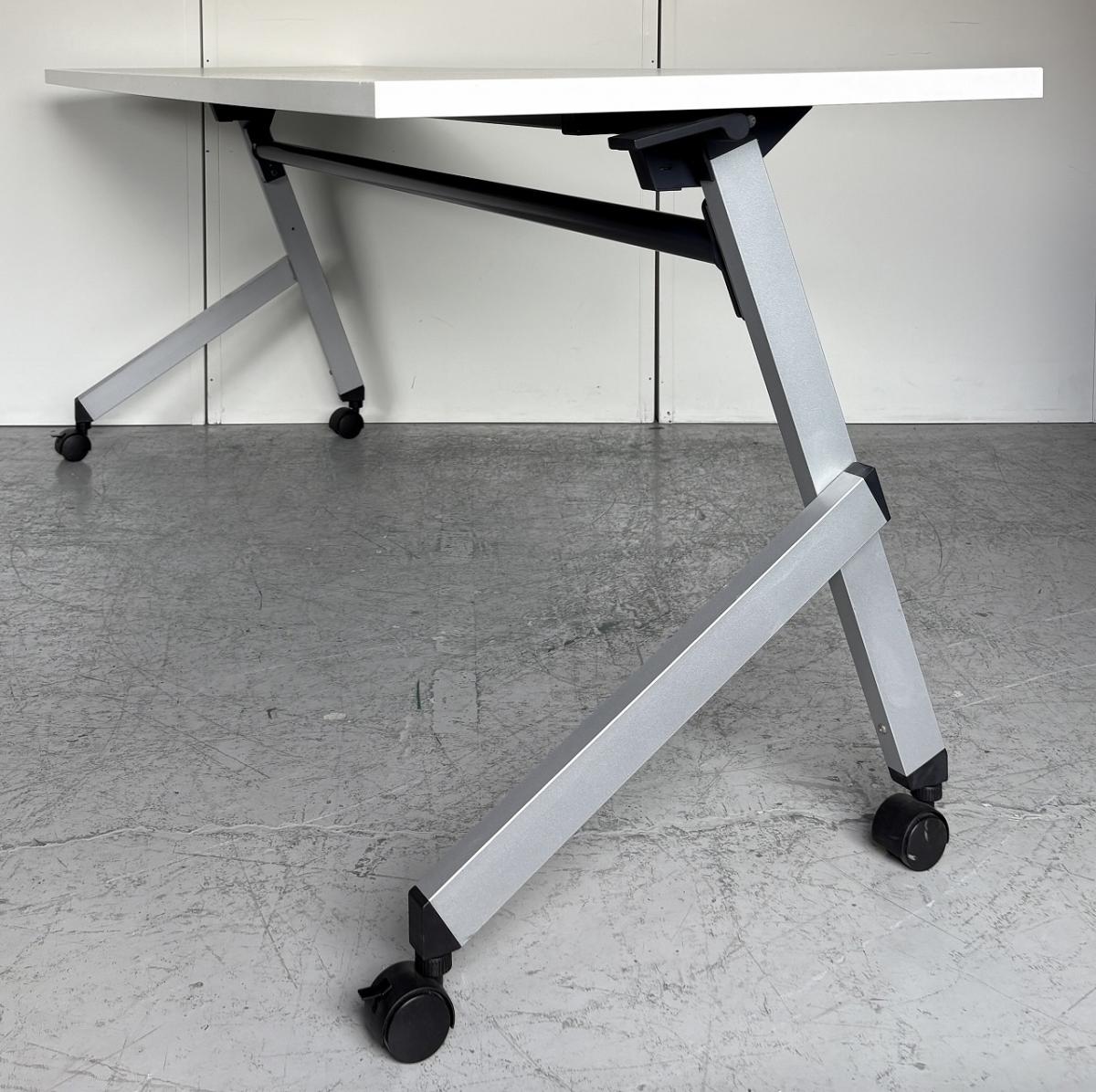 【2~3名様で使えるスタックテーブル入荷!奥行き600㎜で広々!キャスター付きで移動も楽々!】■ウチダ(UTHIDA)製 プラッテ(PLATTE) サイドスタックテーブル ■幅1800×奥行600㎜ ■ピュアホワイト【天板跳ね上げ式でコンパクトに収納!】 オフィスバスターズ東大阪店 幕板無 中古在庫がある店舗一覧