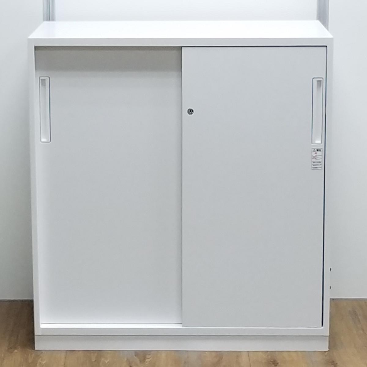 【高さ770mm】【スライド扉でスペースを有効活用!】■コクヨ(KOKUYO)製 エディア(EDIA) 2枚引き違い戸 ローキャビネット ■ホワイト ■シリンダー錠- 京都東寺店