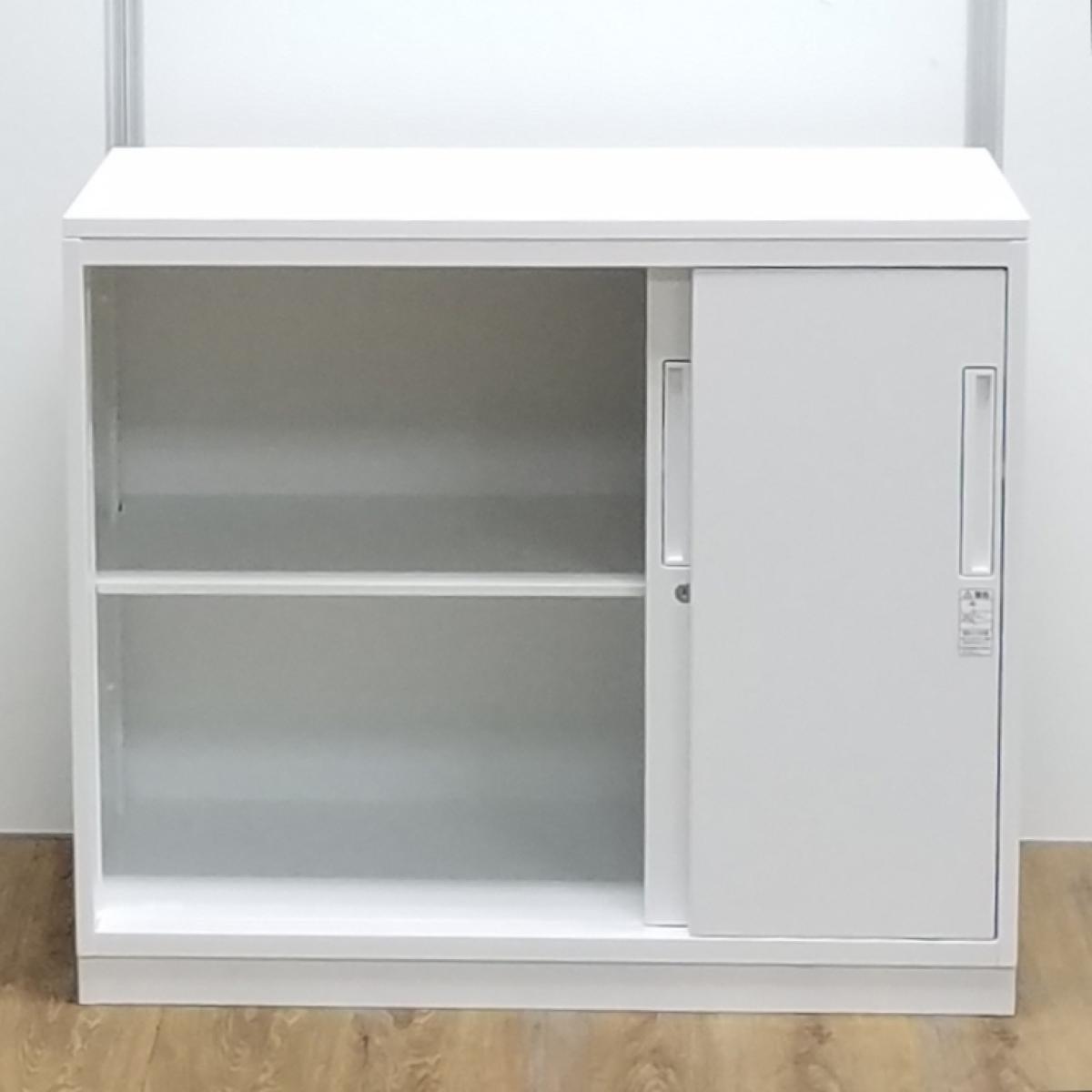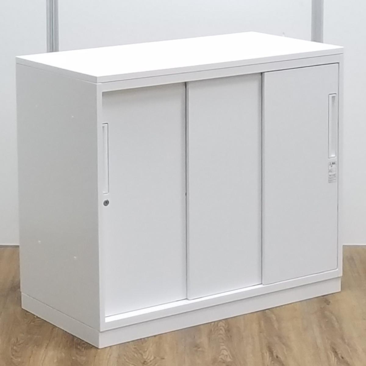 【レア:H770】コクヨ製 エディアシリーズ ホワイト 天板付き シリンダー錠 スライド扉でスペースを有効活用! ローキャビネット 3枚引き違い書庫!!- 京都東寺店