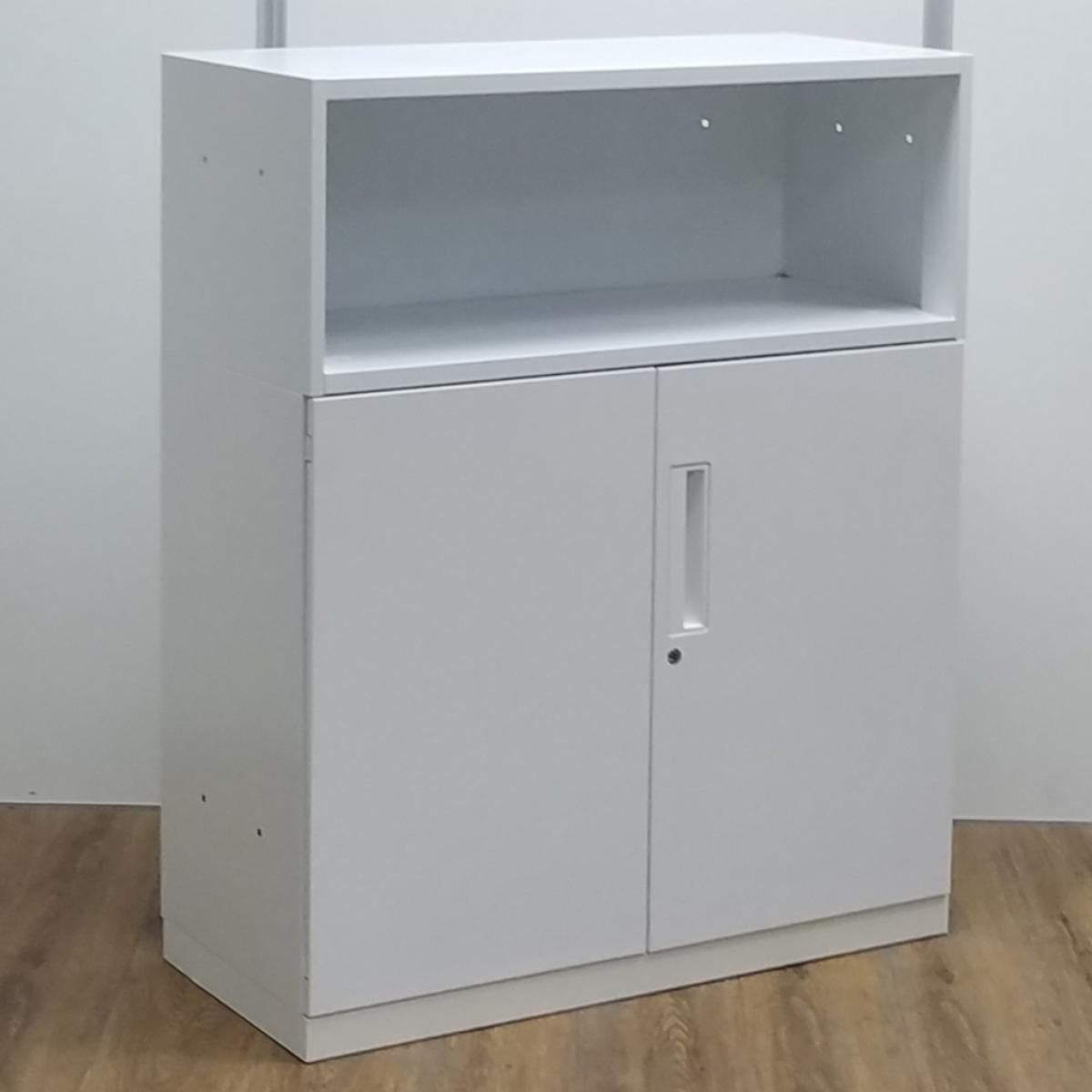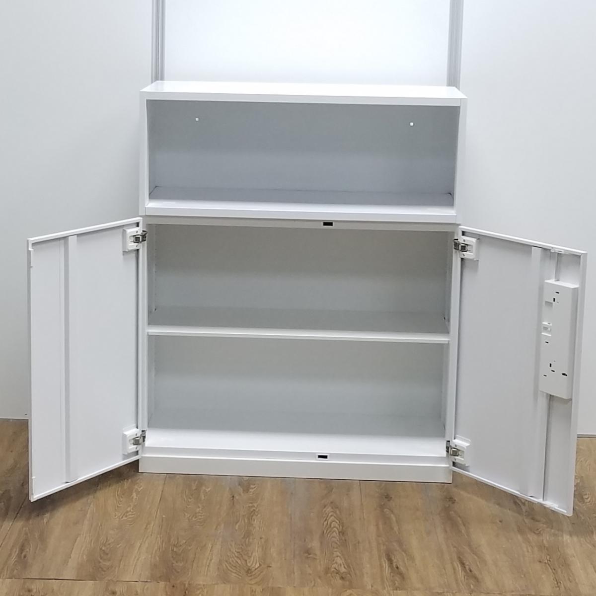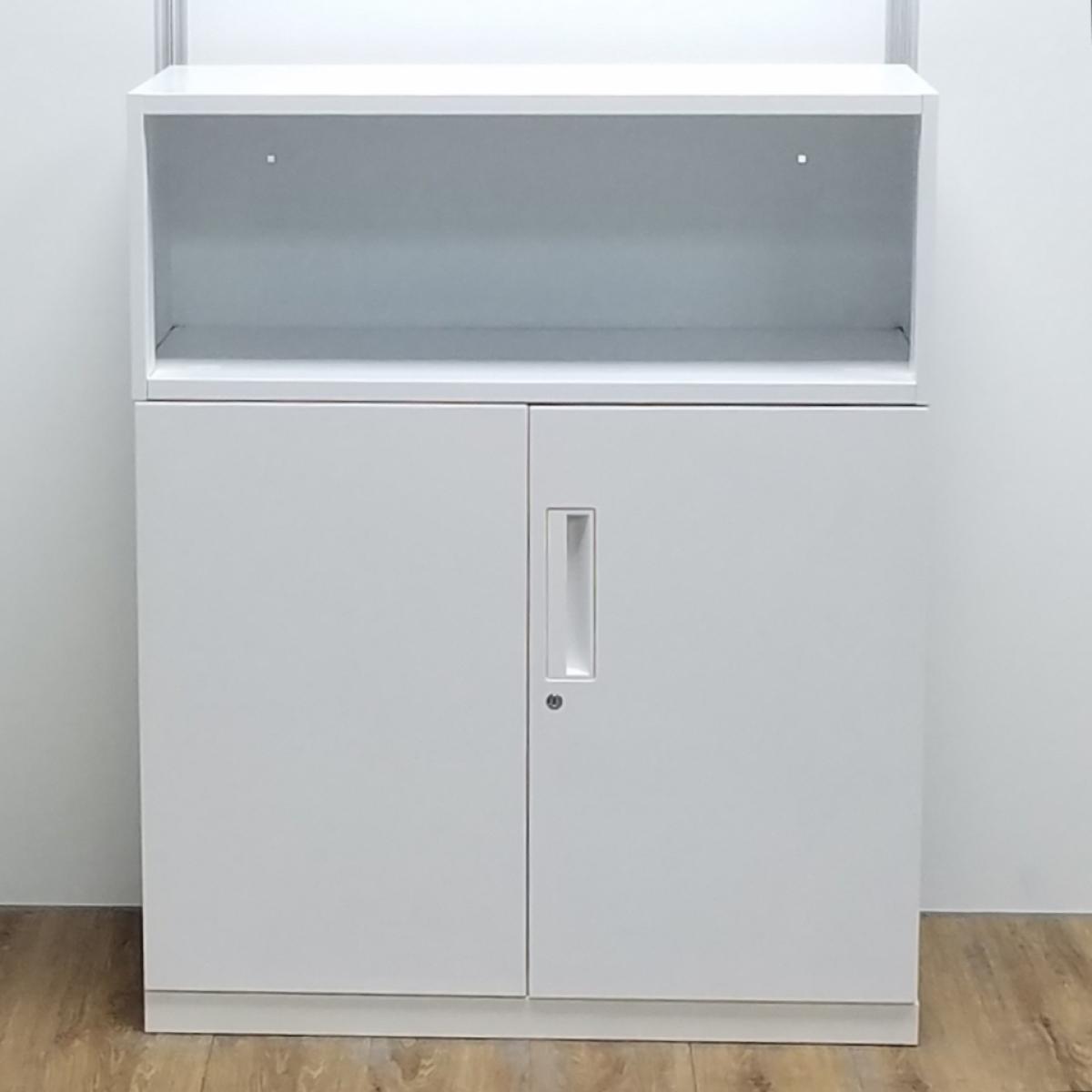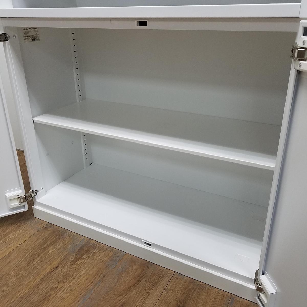 コクヨ製 エディアシリーズ ホワイト H1110サイズ ローキャビネット W900/D400/H1110サイズ シリンダー錠 オープン棚と両開きの珍しい組み合わせが入荷! オープン+両開き 上下書庫セット!!- 京都東寺店