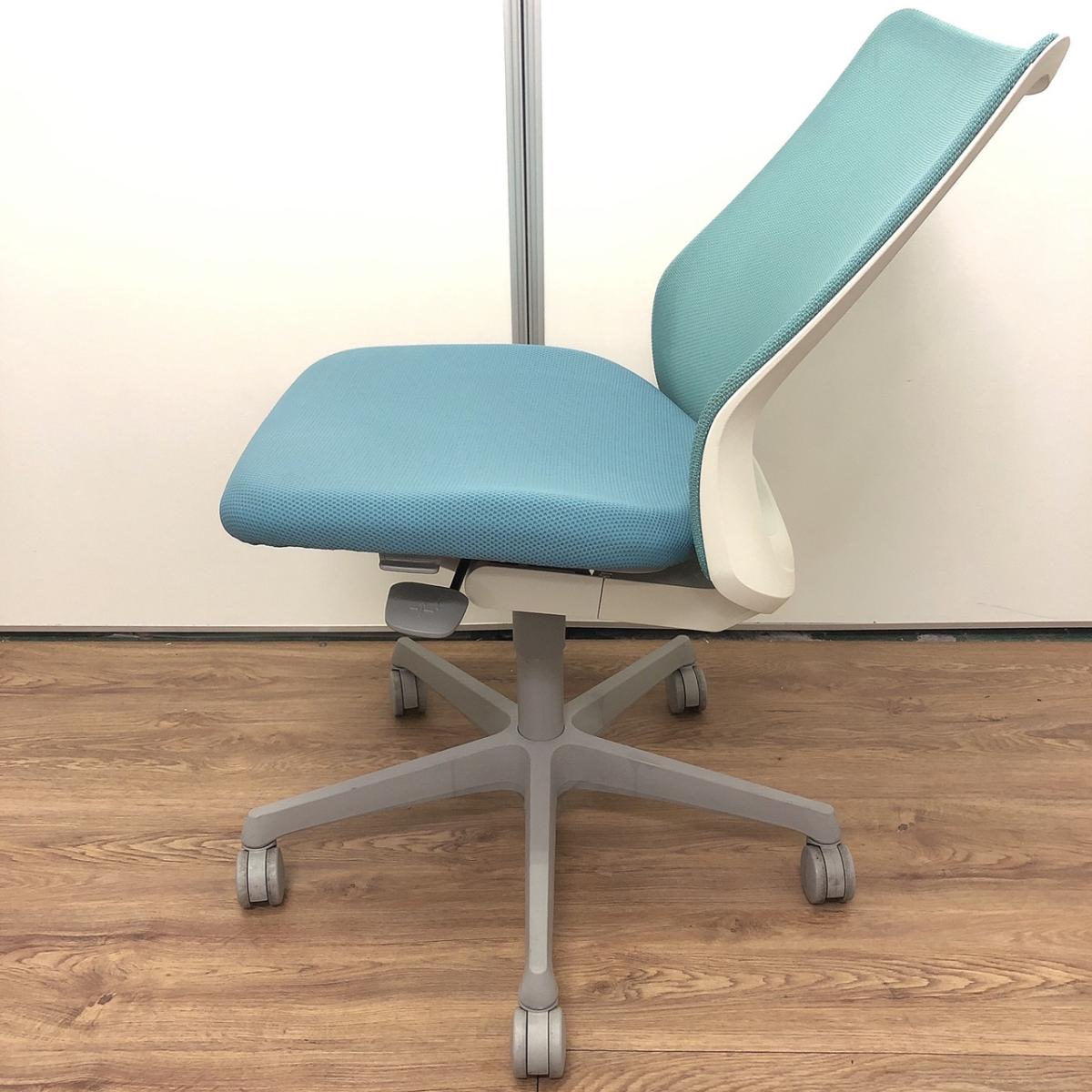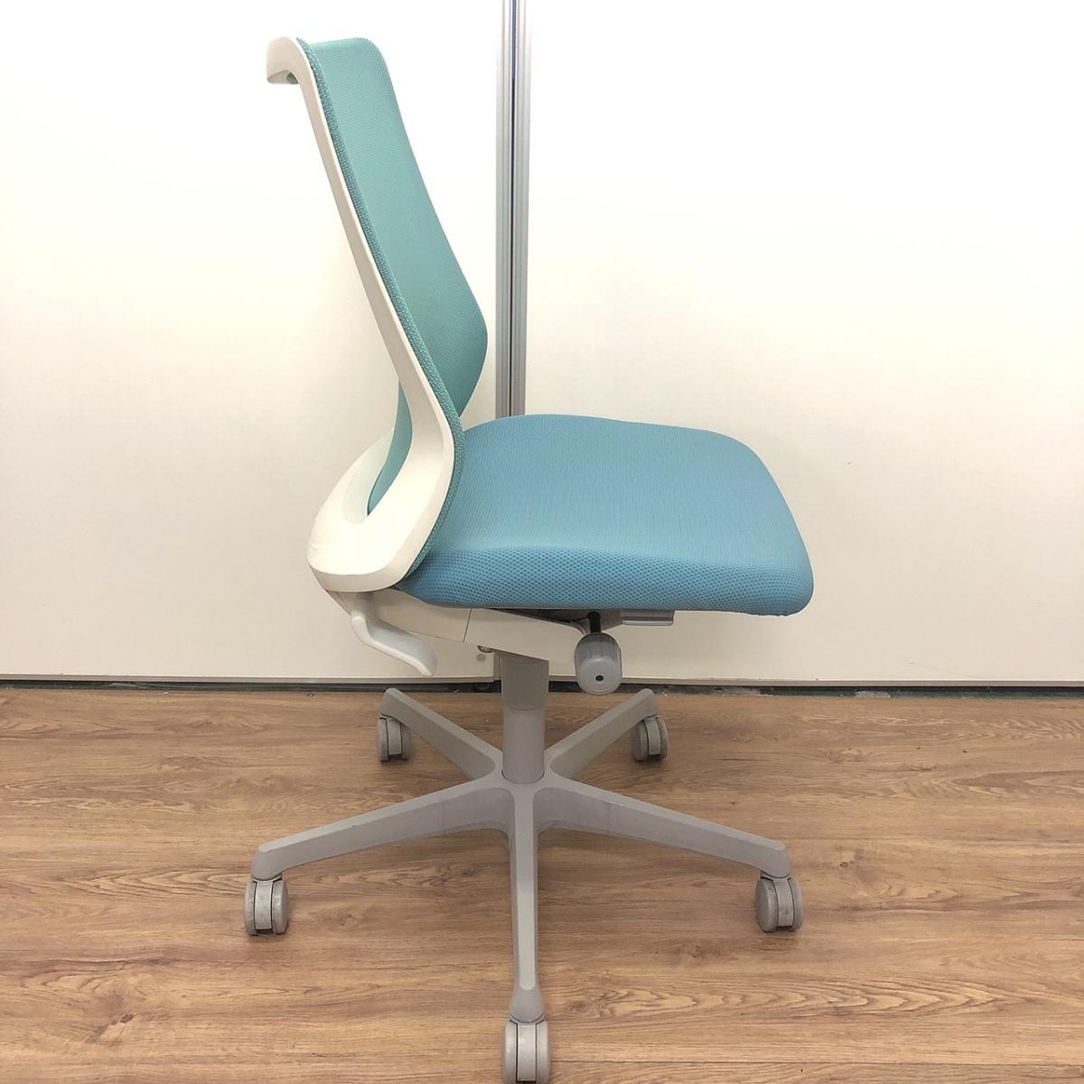 【腰まわりをしっかりホールド!長時間作業も快適フィット!】■オカムラ(okamura)製 フルーエントチェア(Fluent) ローバック 肘無し ■背面メッシュ ■セージブルー×ホワイトシェル〈岐阜・愛知・三重・静岡・福井〉
