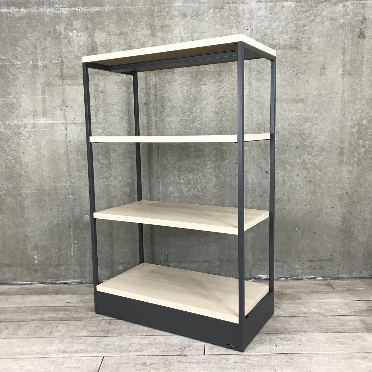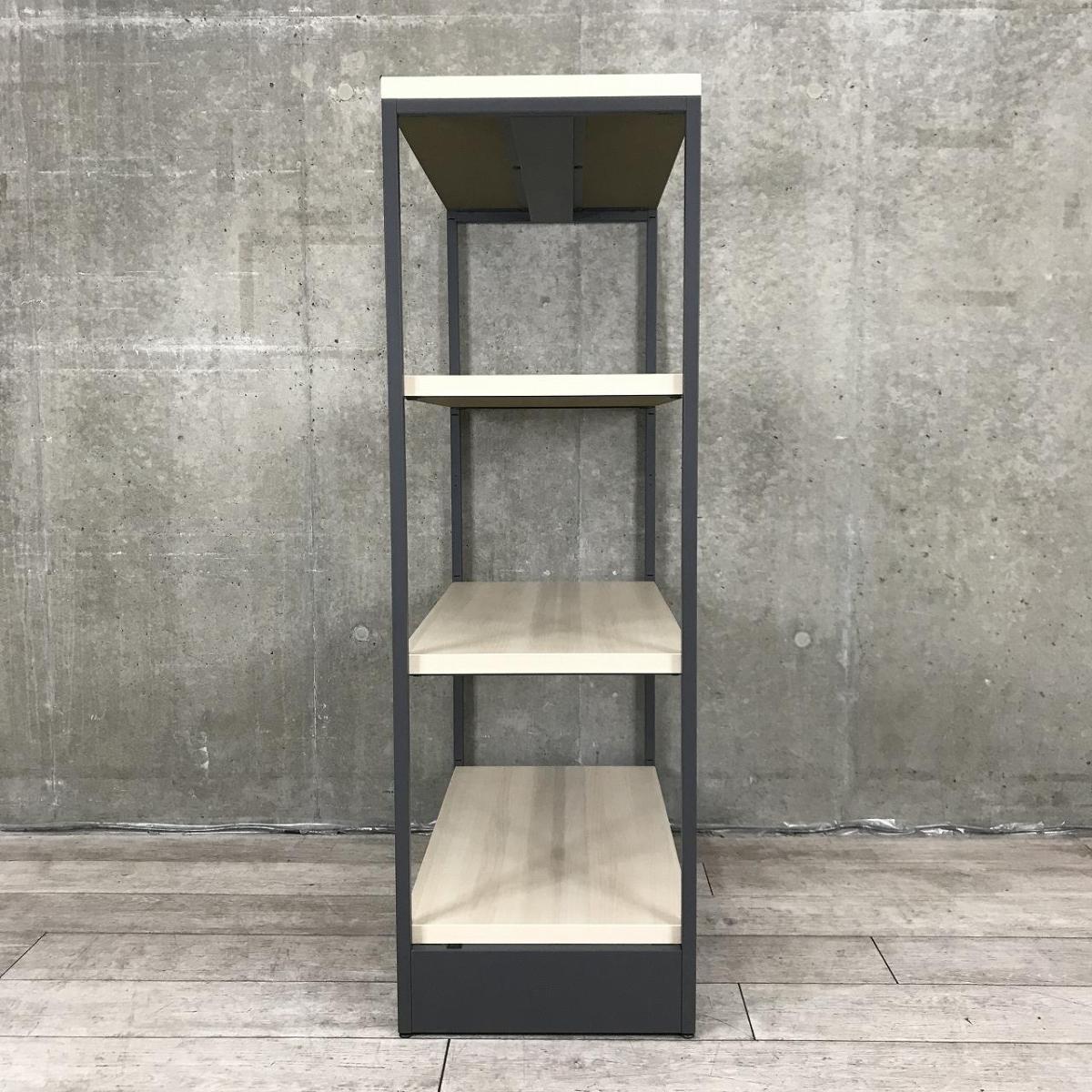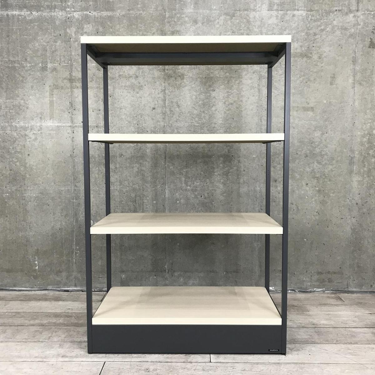 【物を置くことはもちろん、空間をさりげなく仕切るパーテーションにもなるシェルフ入荷!】■オカムラ(okamura)製 ライブス(Lives)シェルフ スチールラック 4段シェルフ W900×D450×H1410㎜ ■フレーム:ブラック 棚:ナチュラル木目調〈岐阜・愛知・三重・静岡・福井〉- 在庫数