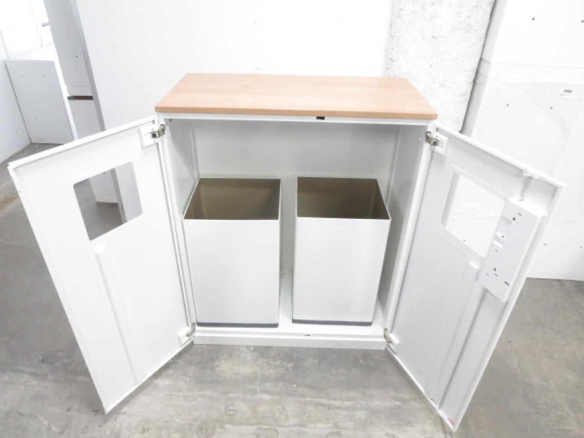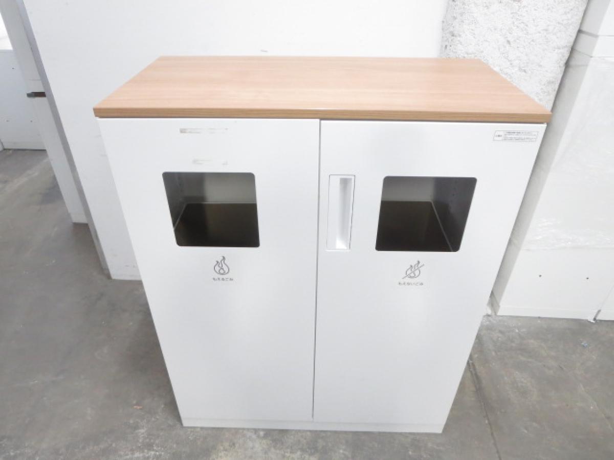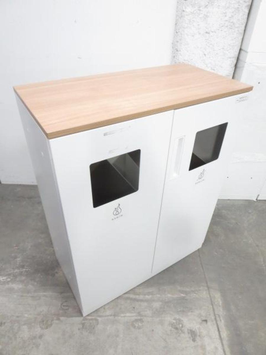 【あると便利な逸品!】リフレッシュスペースに設置もオススメ! ■コクヨ製 両開きトラッシュユニット(分別ダストボックス) 木目天板付き ■ぱっと見ではゴミ箱には見えないデザイン!- 名古屋本店