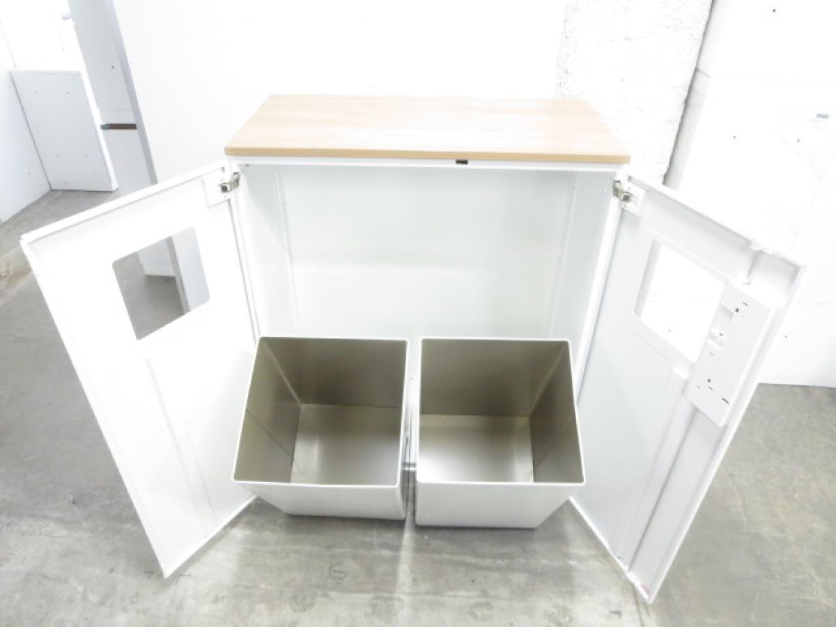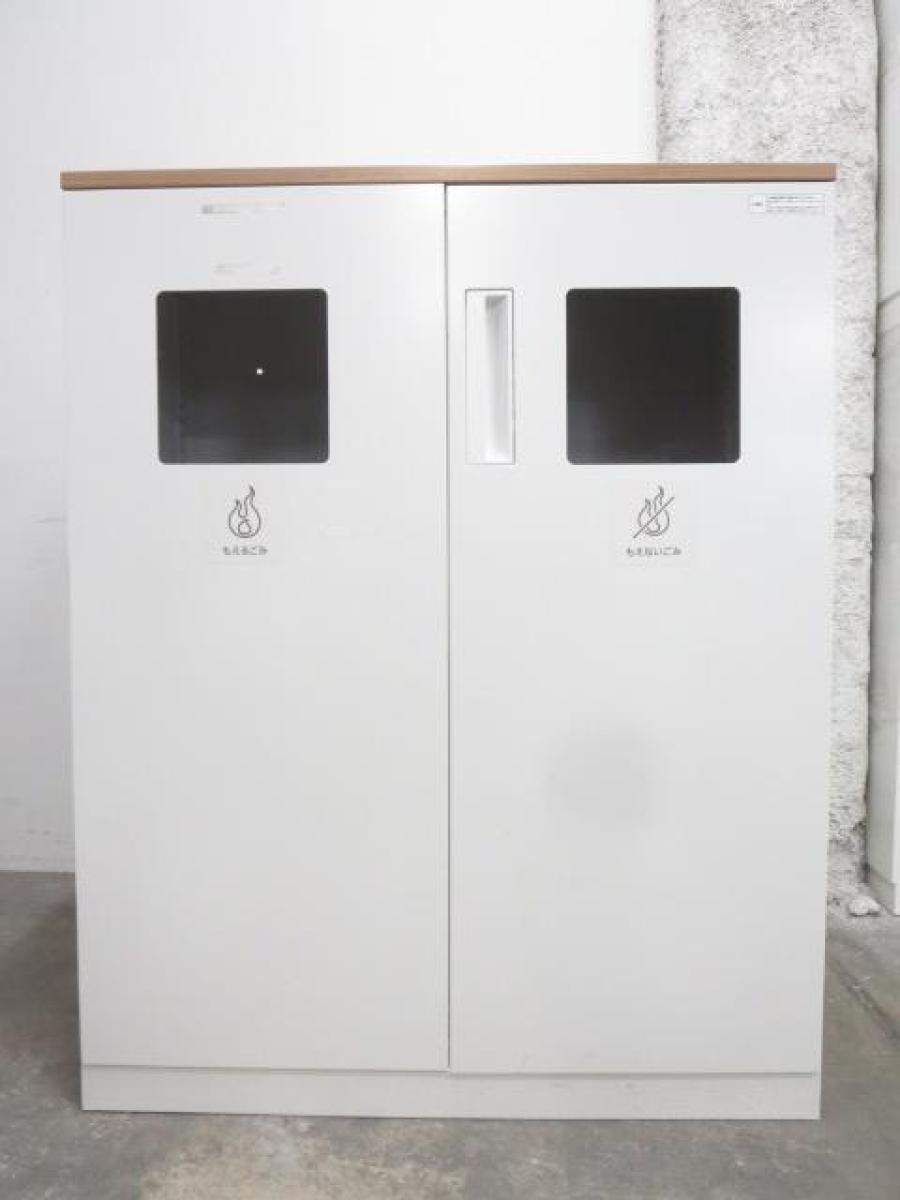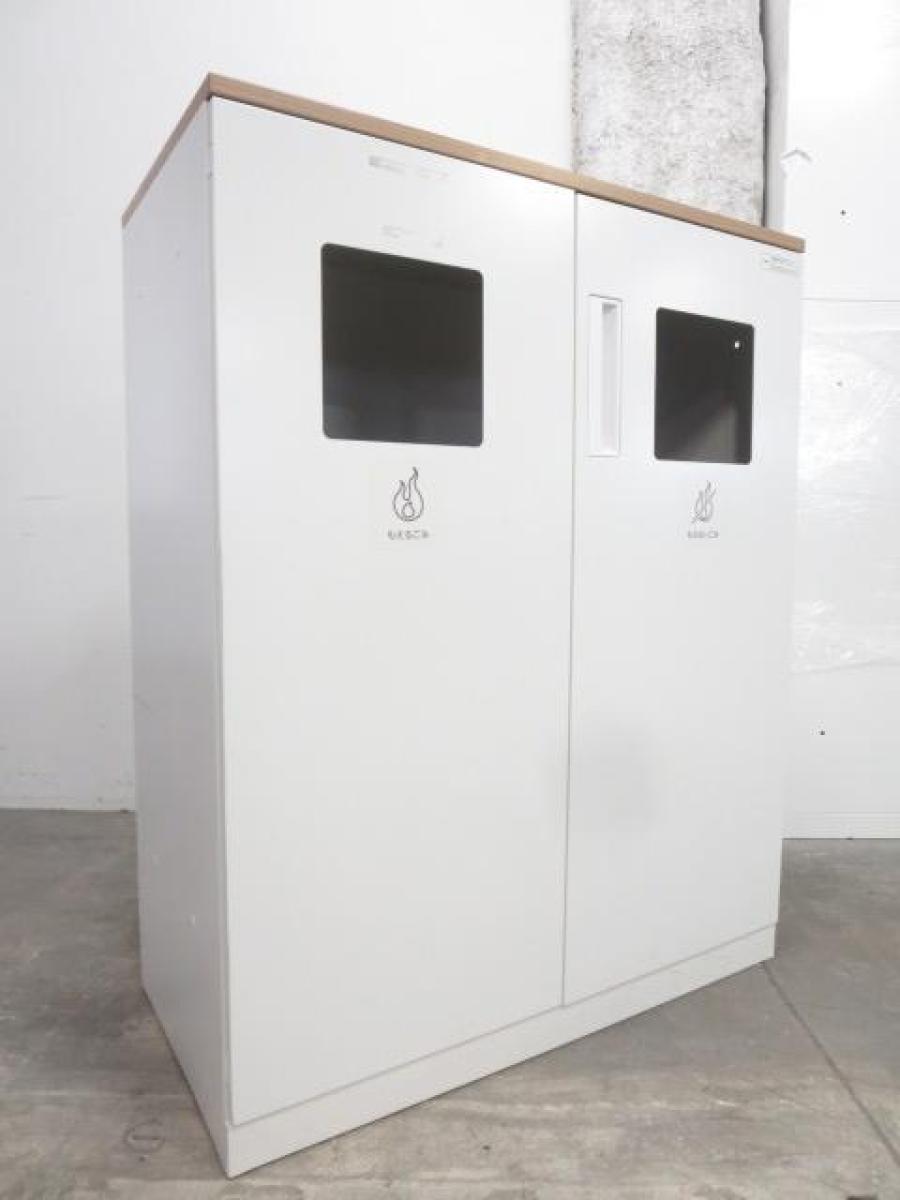 【あると便利な逸品!】リフレッシュスペースに設置もオススメ! ■コクヨ製 両開きトラッシュユニット(分別ダストボックス) 木目天板付き ■ぱっと見ではゴミ箱には見えないデザイン!- 名古屋本店