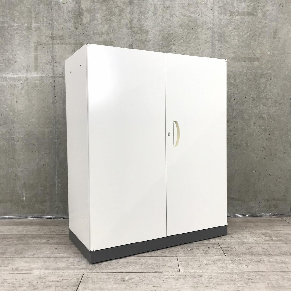 【オフィスの書類をスッキリ整理】【書類の収納スペースを増やしたい方に!】■ライオン(LION)製 両開き書庫 ローキャビネット ■ホワイト ■ベース:グレー ■シリンダー錠【入替セールにつき40%OFF!】- つくば店