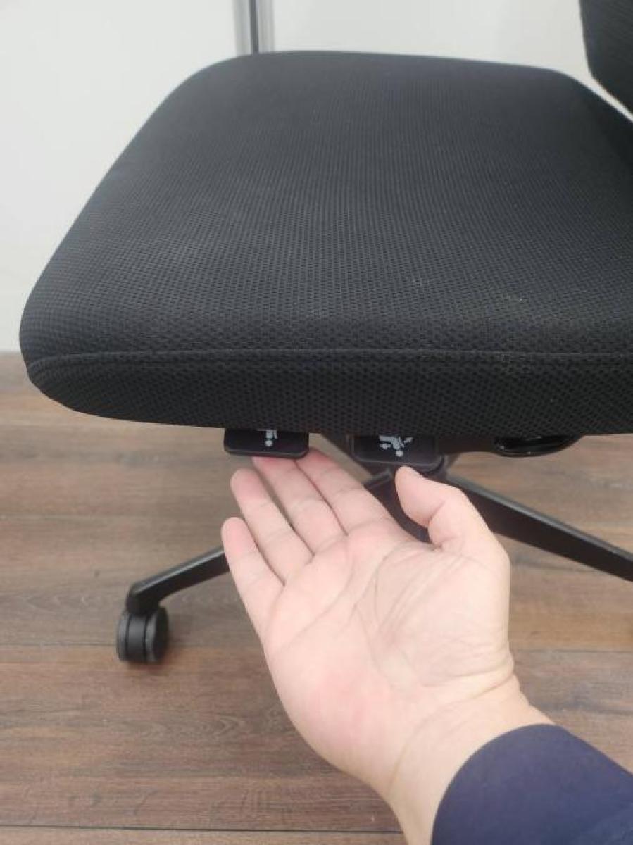 座面の高さや前後などの基本的な調整レバーが座面裏の前方に集約されており、姿勢を変えずに調節ができます。