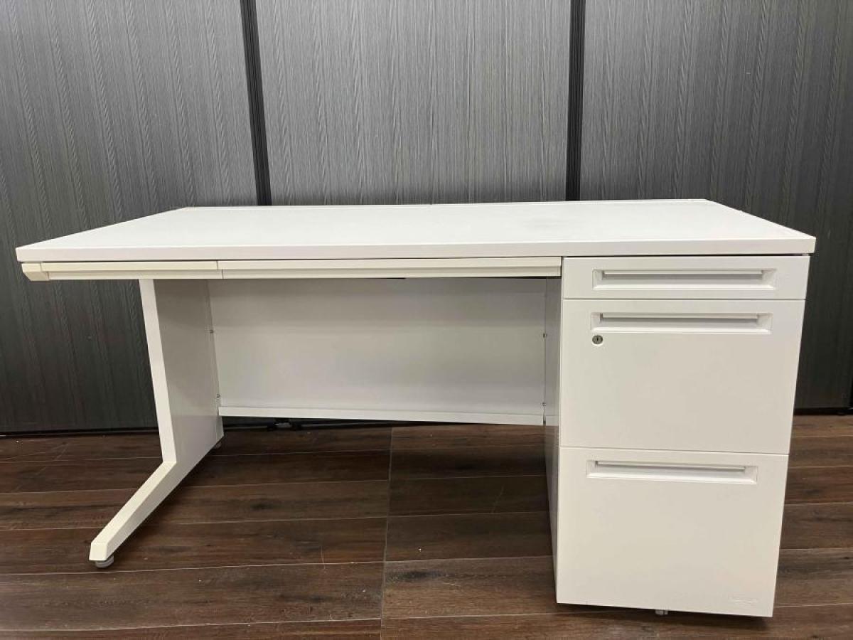 【セットでお買い得!横幅1400の平机と3段ワゴン!疑似片袖机】 オカムラ アドバンス ホワイト 引き出し付き ネオホワイト【収納が欲しいかたにはオススメ】