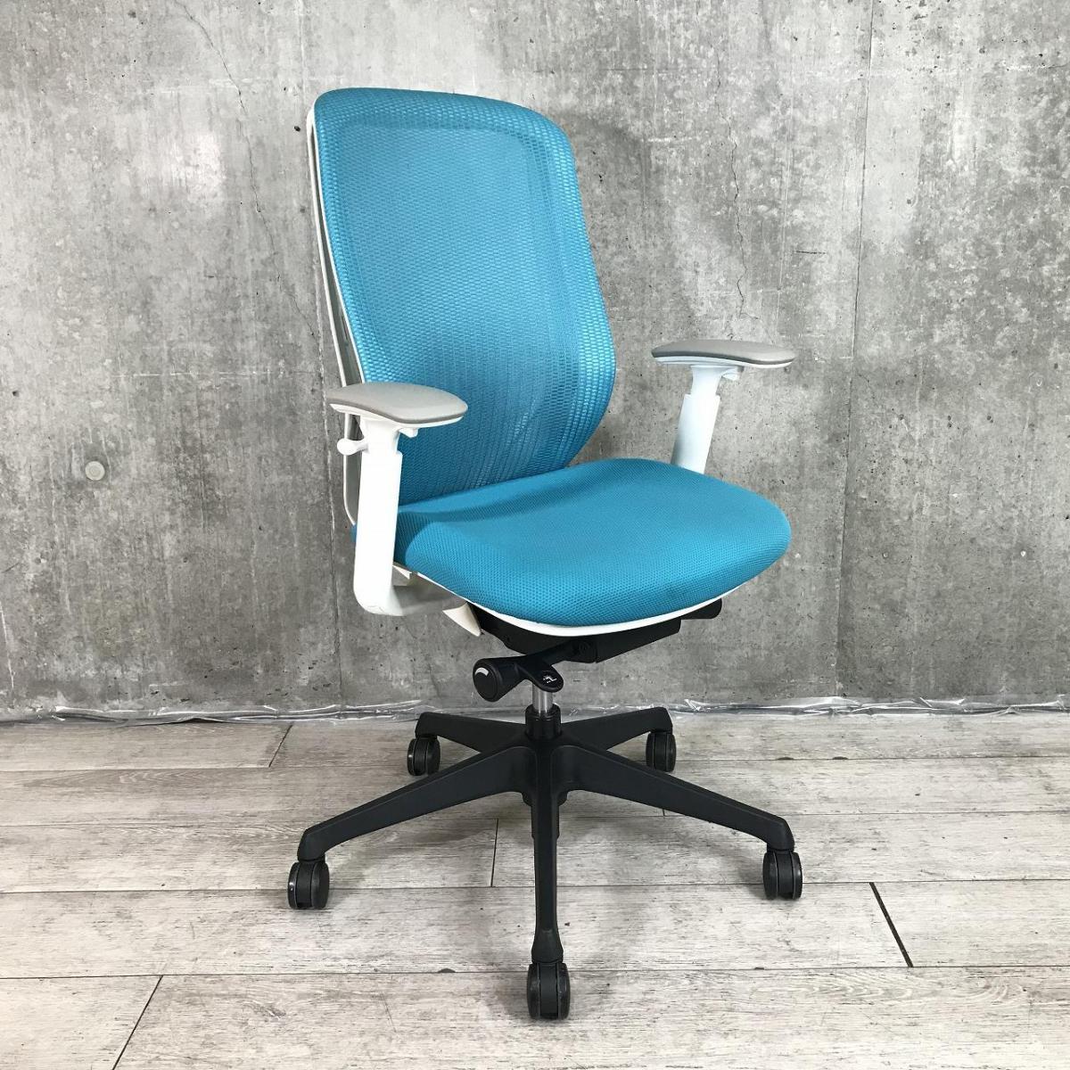【新品ヘッドレスト交換済み】オカムラ/シルフィー/ブルー/可動肘