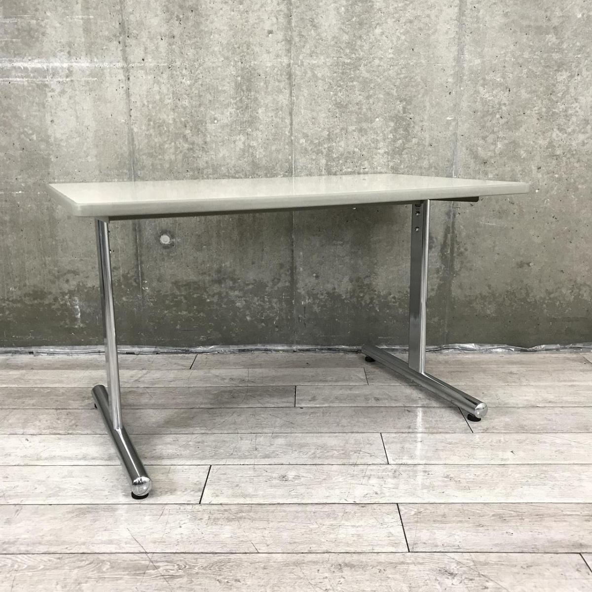 【スタンダードなデザインで使いやすい!リフレッシュスペースでのご使用もオススメです!】■オカムラ(okamura)製 8176シリーズ ミーティングテーブル 角テーブル W1200×D750㎜ ■天板:グレー/T字脚:ポリッシュ- 在庫数