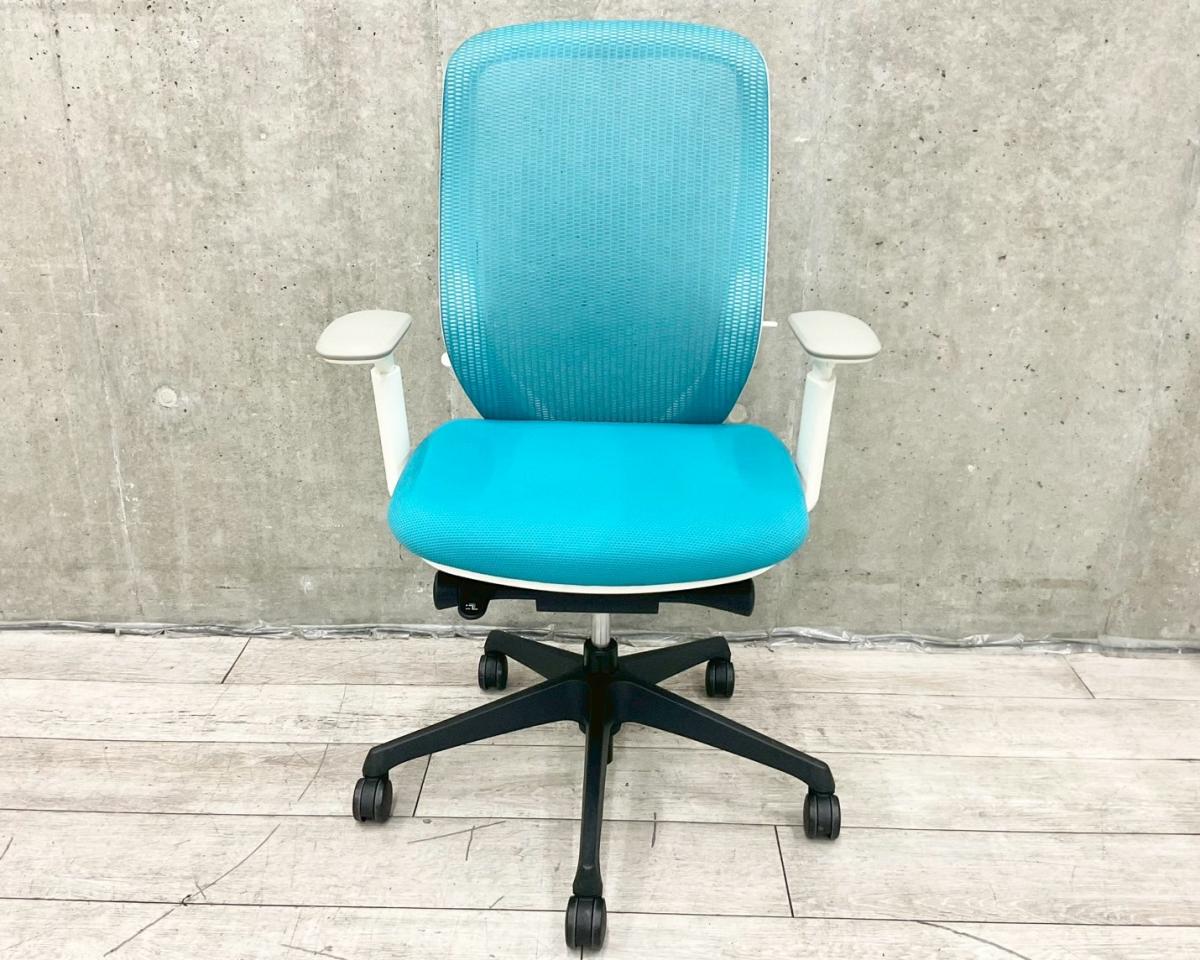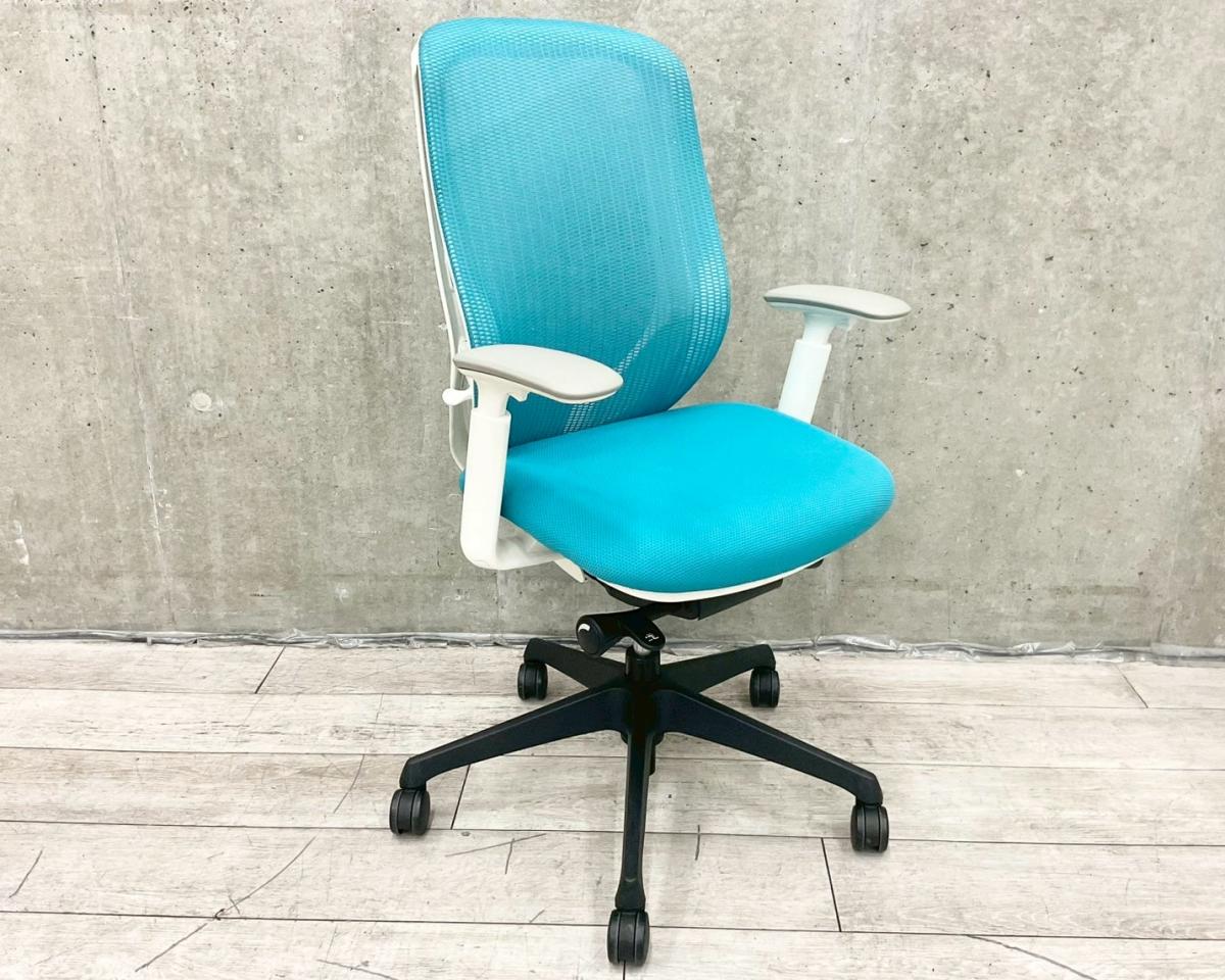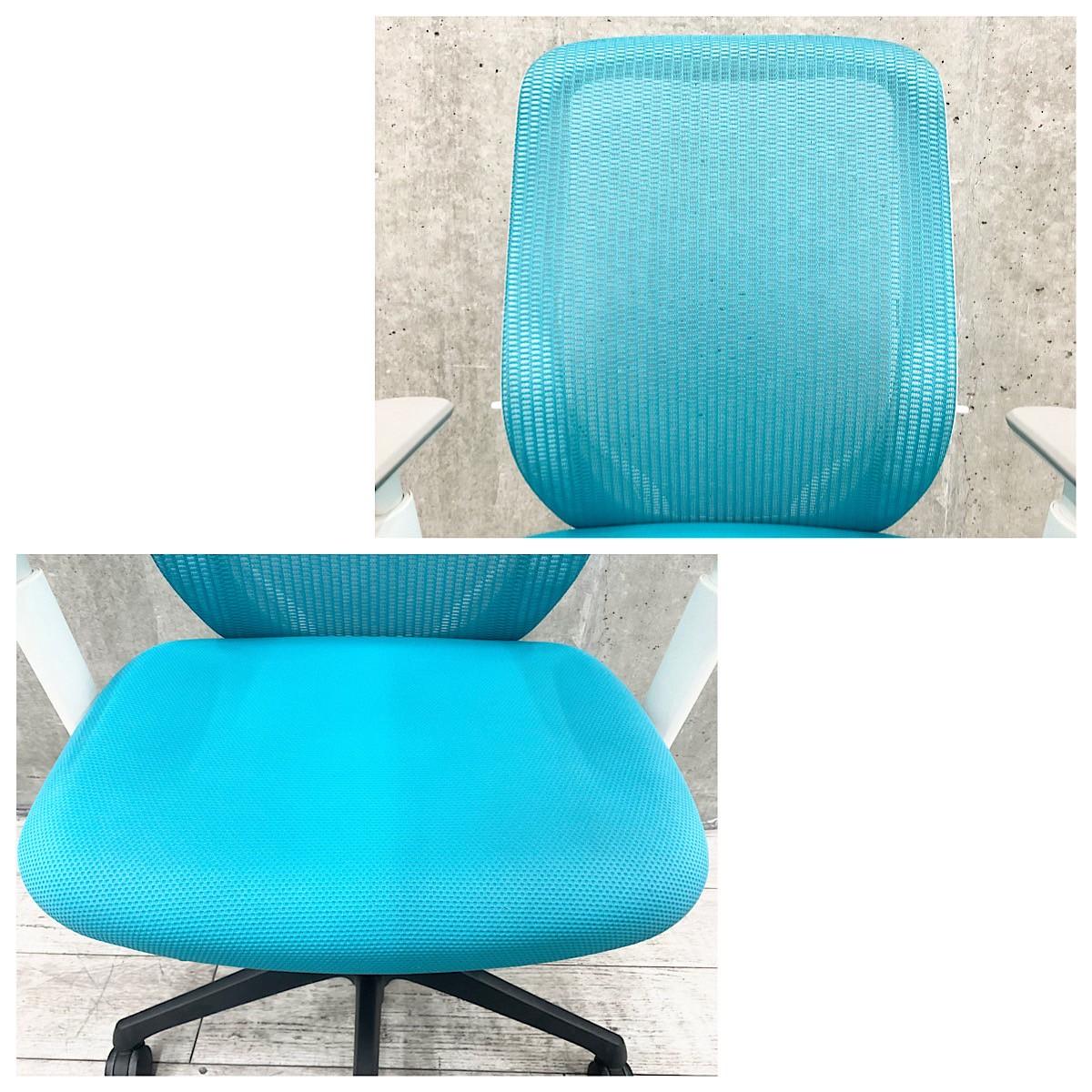 【新品ヘッドレスト交換済み】オカムラ/シルフィー/ブルー/可動肘