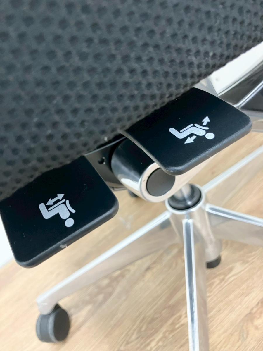 座面の高さや前後などの基本的な調整レバーが座面裏の前方に集約されており、姿勢を変えずに調節ができます。