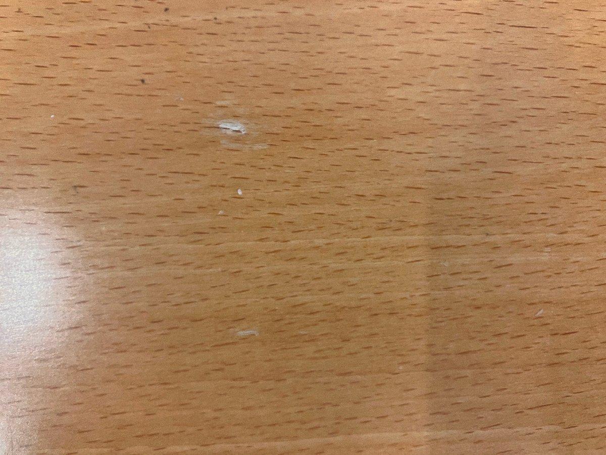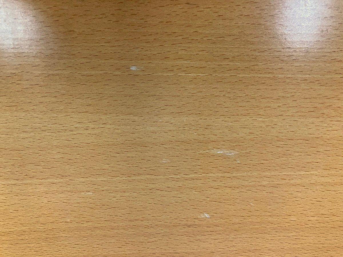 - あり黄ばみ・変色が広い範囲にうっすらある、または濃い黄ばみ・変色が一部ある。(例、天板、幕板、棚板、サイド部分、脚部等にある。)