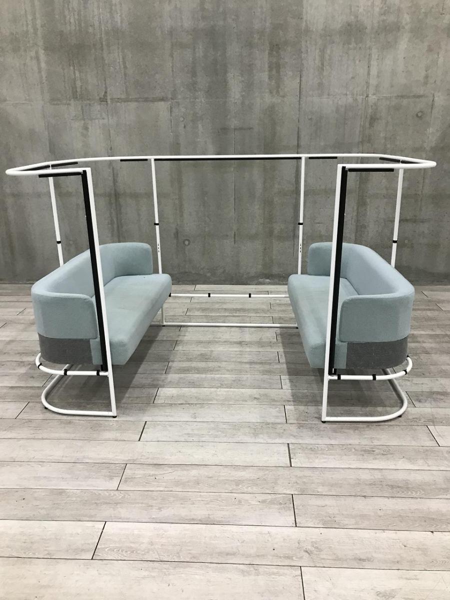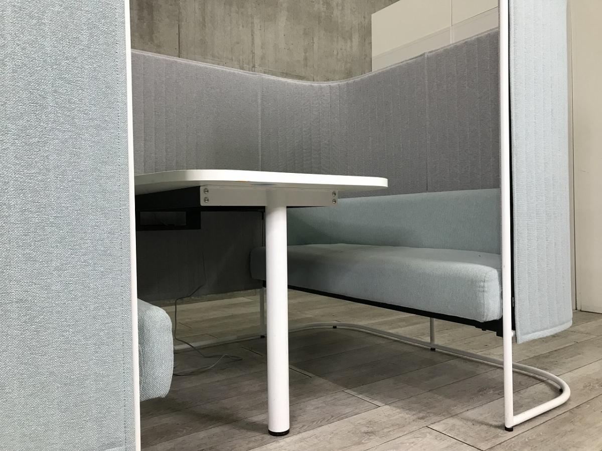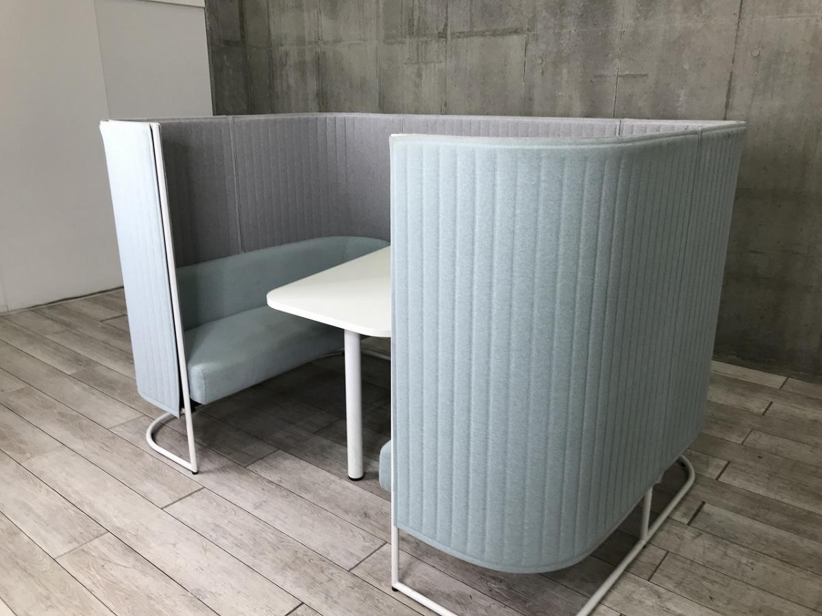 【壁やパーテーションで完全に仕切らずにゆったりと囲った4人用のセミクローズド空間!】■コクヨ製 インフレーム ■外側・ソファー/ ライトブルー × 内側/ ライトグレー × ホワイト脚 ■天板 ホワイト 【ABW商材】【関東倉庫在庫品】【弊社使用欄:A01020388】- 全店共通商品
