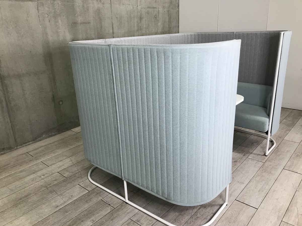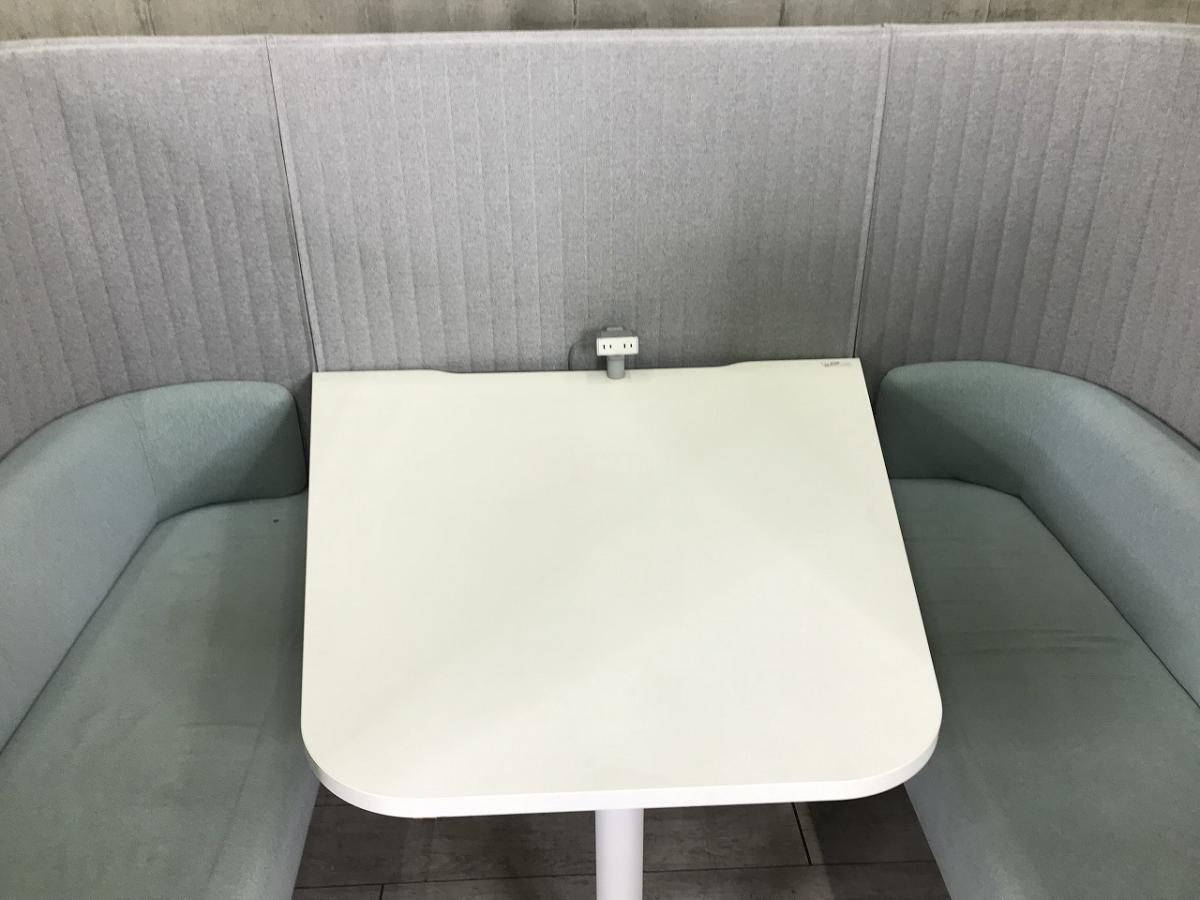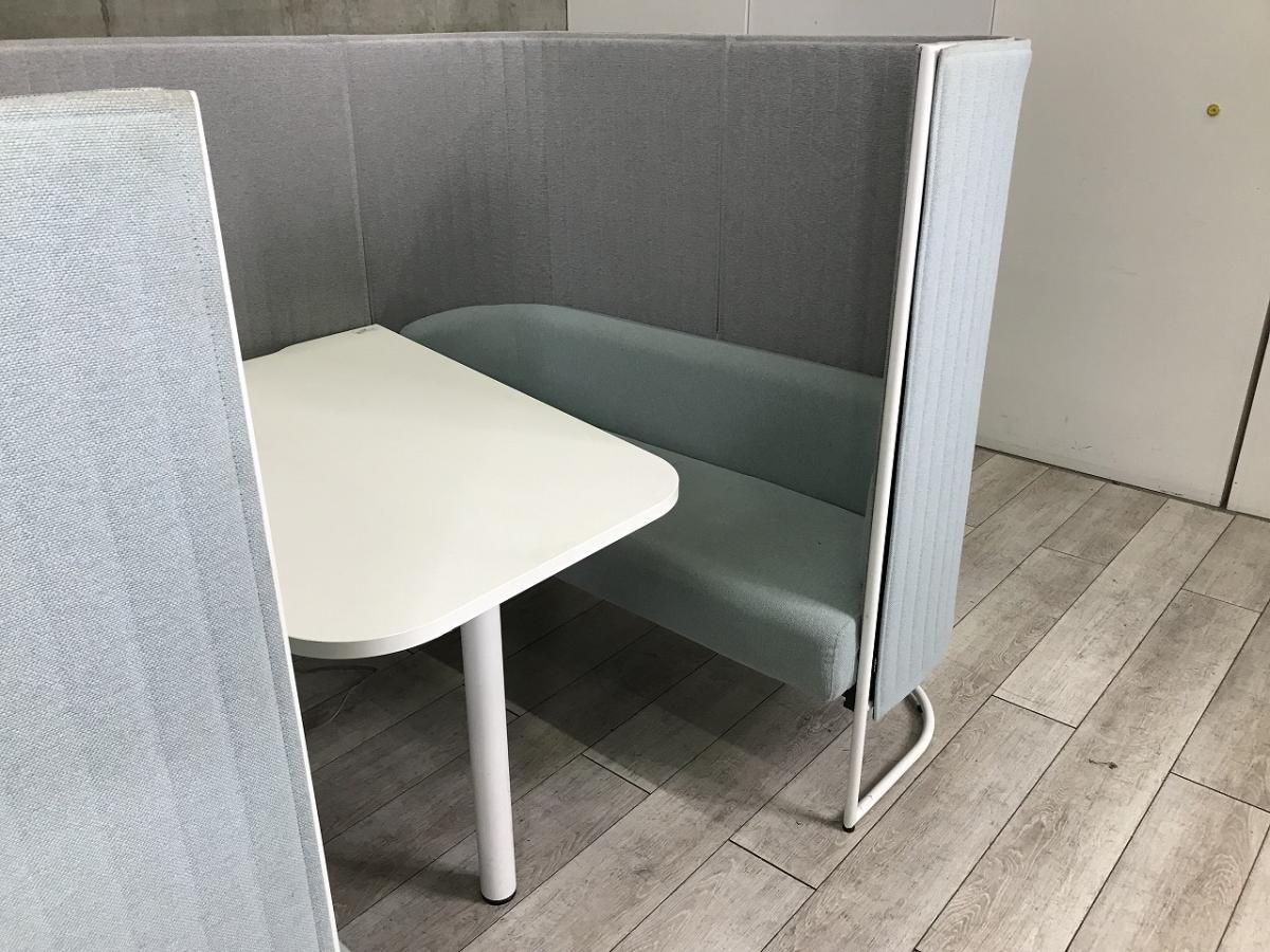 【壁やパーテーションで完全に仕切らずにゆったりと囲った4人用のセミクローズド空間!】■コクヨ製 インフレーム ■外側・ソファー/ ライトブルー × 内側/ ライトグレー × ホワイト脚 ■天板 ホワイト 【ABW商材】【関東倉庫在庫品】【弊社使用欄:A01020388】- 全店共通商品