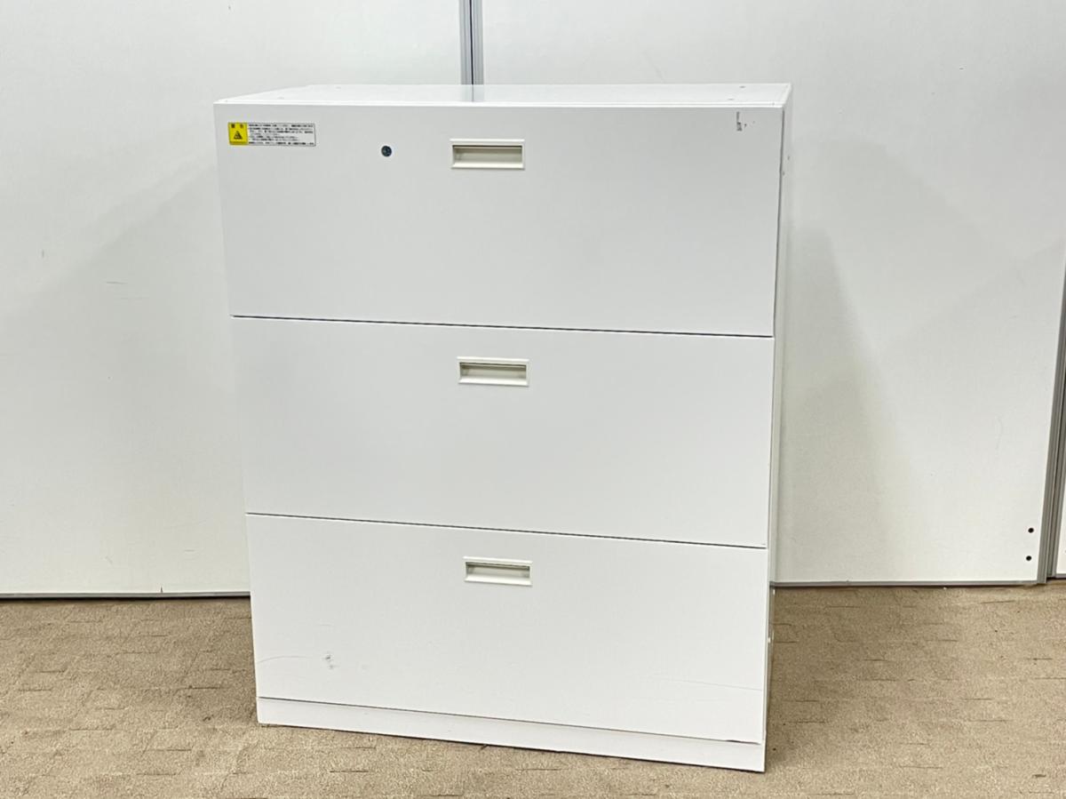 【日焼けありのため特価★】ウチダ(UCHIDA) BEストレージ 3段ラテラル書庫 ローキャビネット オフホワイト シリンダー錠 引き出し 収納 福岡 博多 天神 九州最大級