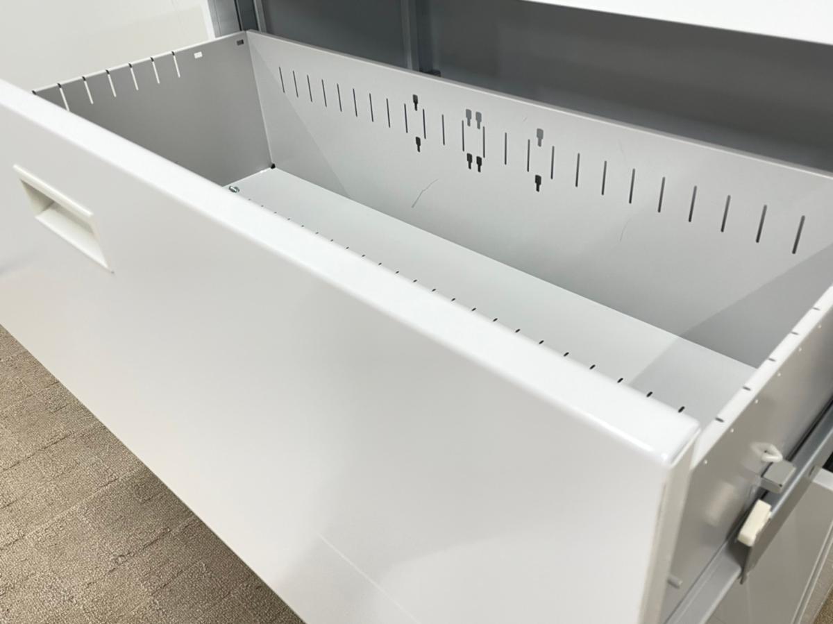 【新品】【メーカー在庫品】ウチダ 製 BEストレージ ホワイト 高さ1100サイズ シリンダー オフィス書類をたっぷり収納 3段ラテラル書庫!!【店舗展示品アリ!】