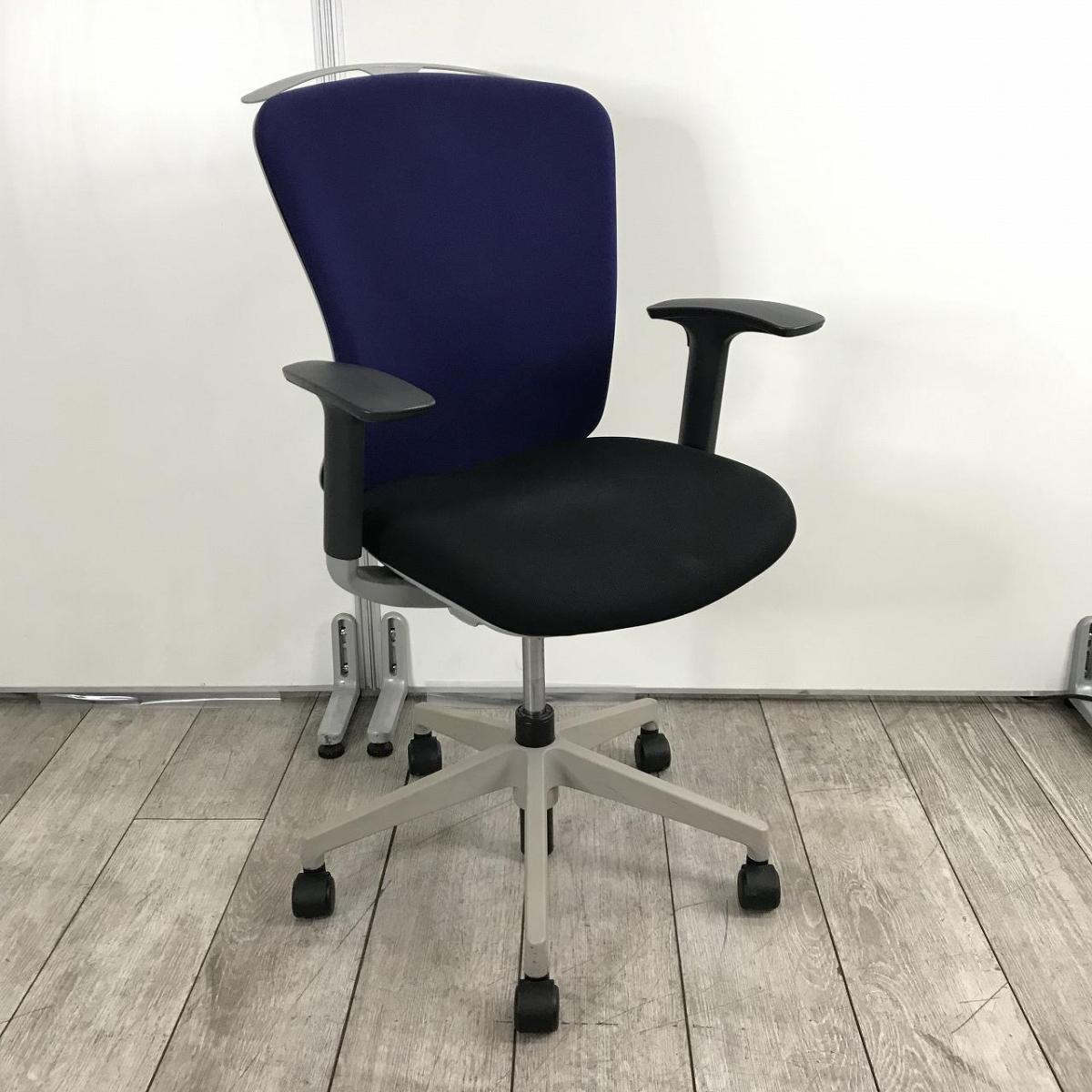 【在庫セール品】【定価約4万円】【ローコストチェアの定番!】【使いやすいスタンダードなデザイン】■イナバ(inaba)製 バルチェ 肘付ハイバック ■可動肘付 ■背面:ブルー×座面:ブラック×グレーシェル