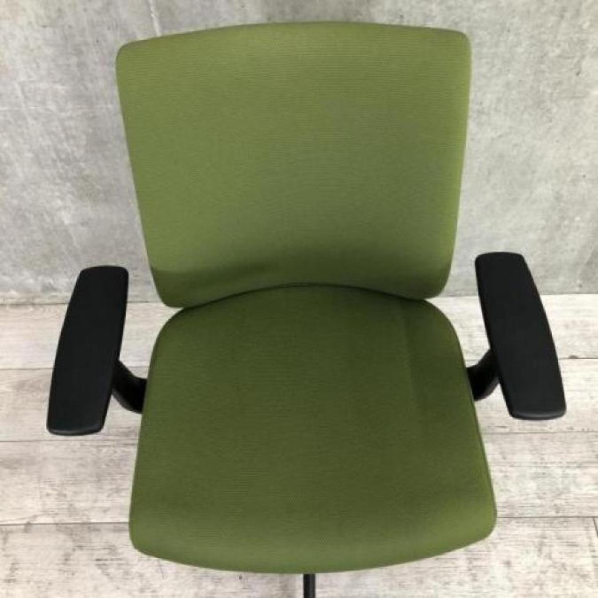 【関西倉庫在庫】コクヨ製 ウィザードシリーズ イエローグリーン 樹脂脚 固定肘 肘付きローバックチェア 【弊社使用欄: A01019819】