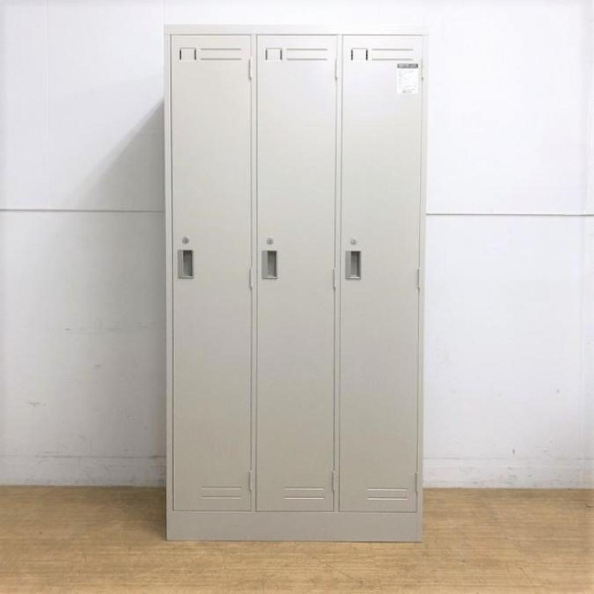 スタンダードな3人用スチールロッカー コクヨ LK 鍵付き ニューグレー- 名古屋千種店