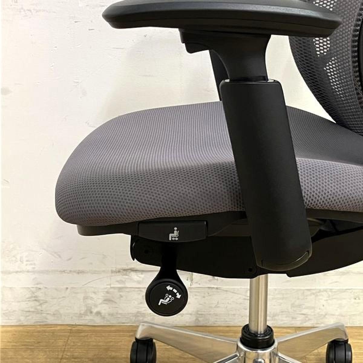 【2023年製】オカムラ シルフィ ハイバック 背:メッシュ アジャストアーム(可動肘) ミディアムグレー×ブラックフレーム ポリッシュ脚 前傾機能がウリの高機能チェア ※肘パッドに若干浮きがありますサーキュラーバリューCO2削減量の算出について