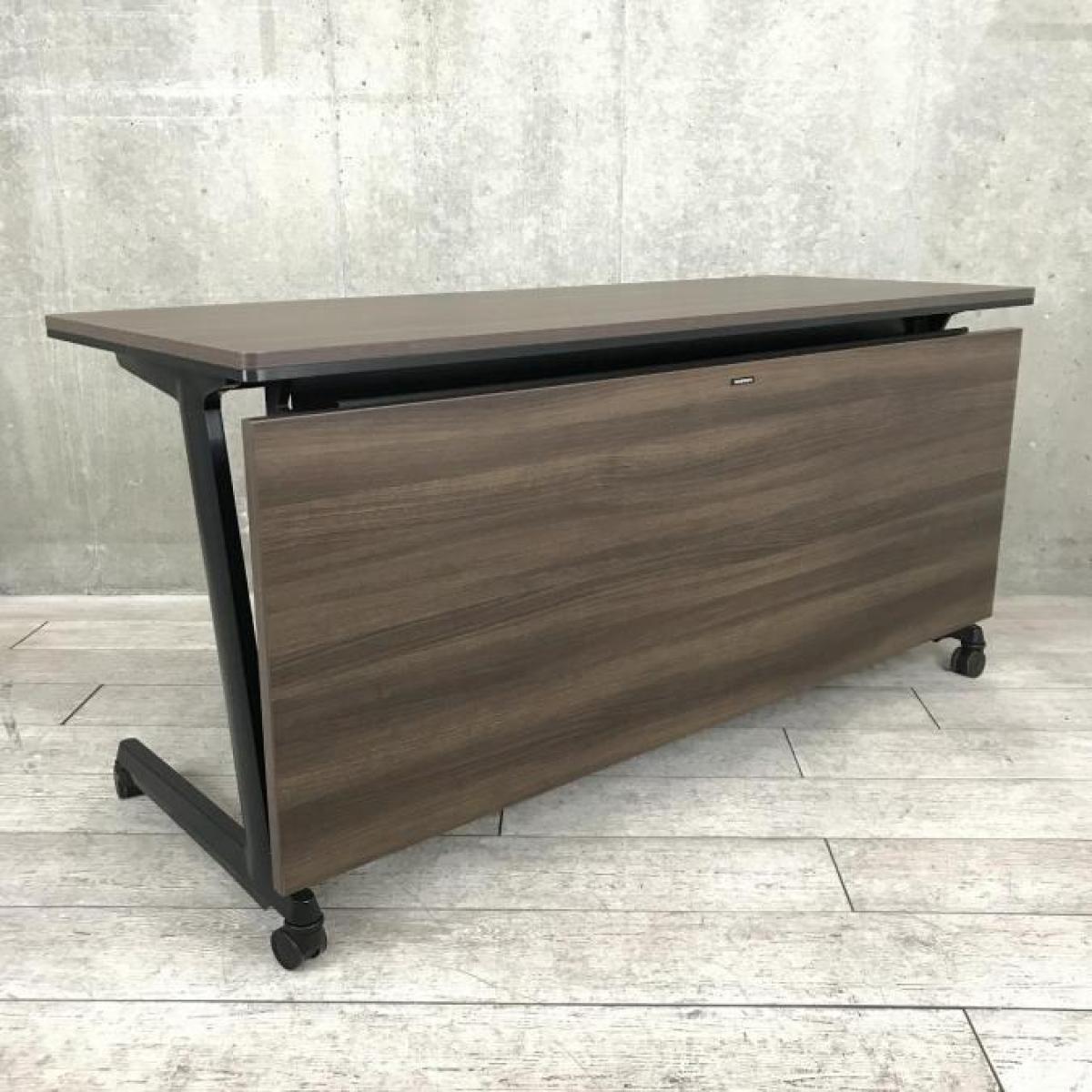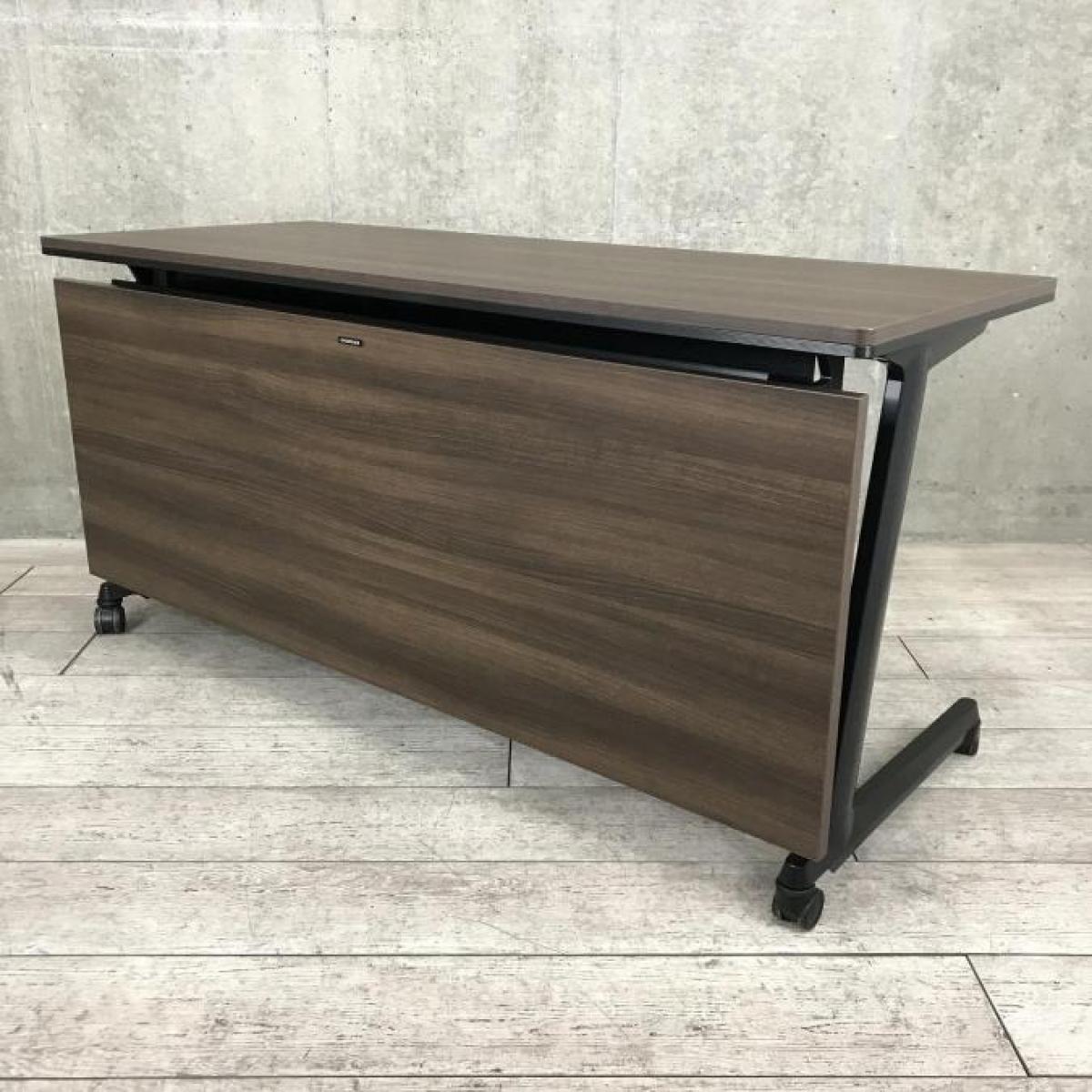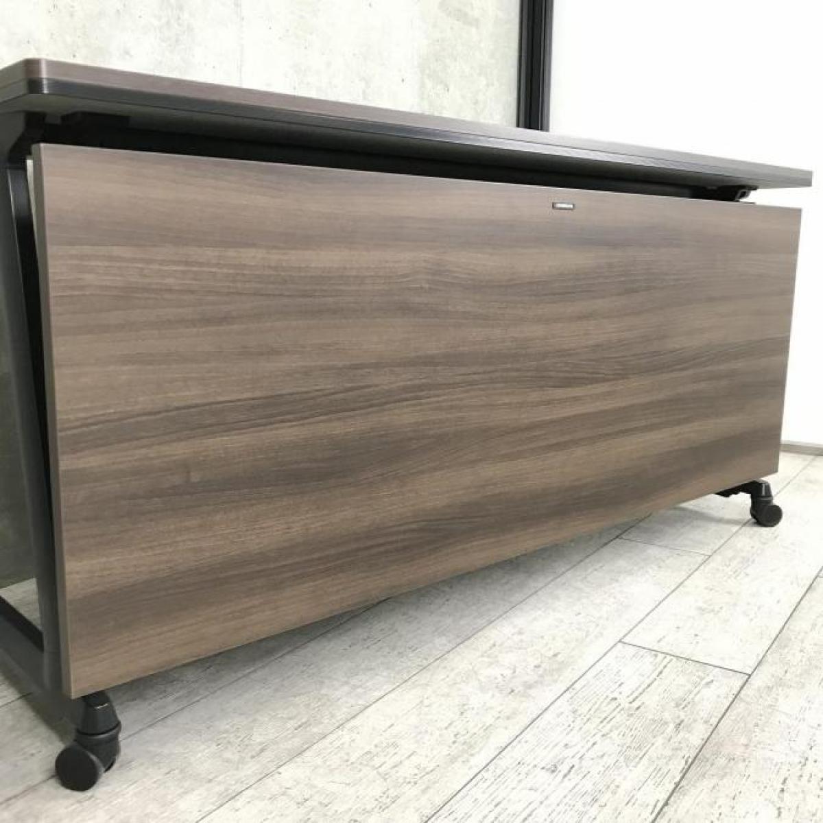 【在庫入替セール】【3台限定】【定価20万円オーバーの高級シリーズ!濃い木目調の天板が会議室に重厚感を!】■オカムラ(okamura)製 エレガスタシリーズ サイドスタックテーブル ■幕板付き ■天板:木目ダーク※幕板の折りたたみ不可となります。- 在庫数