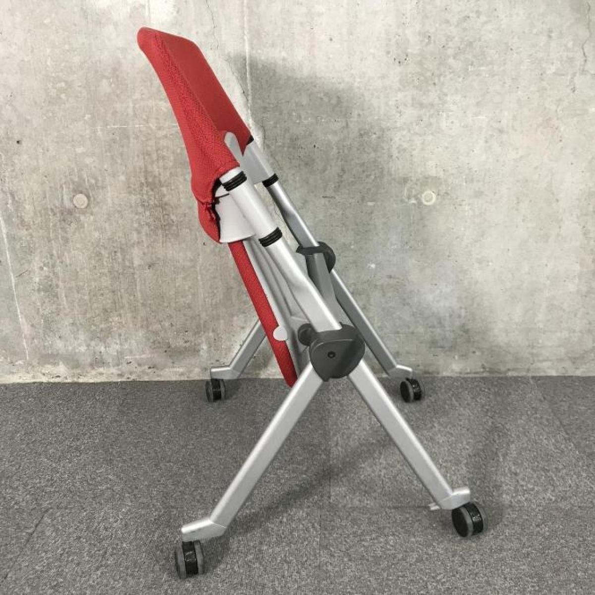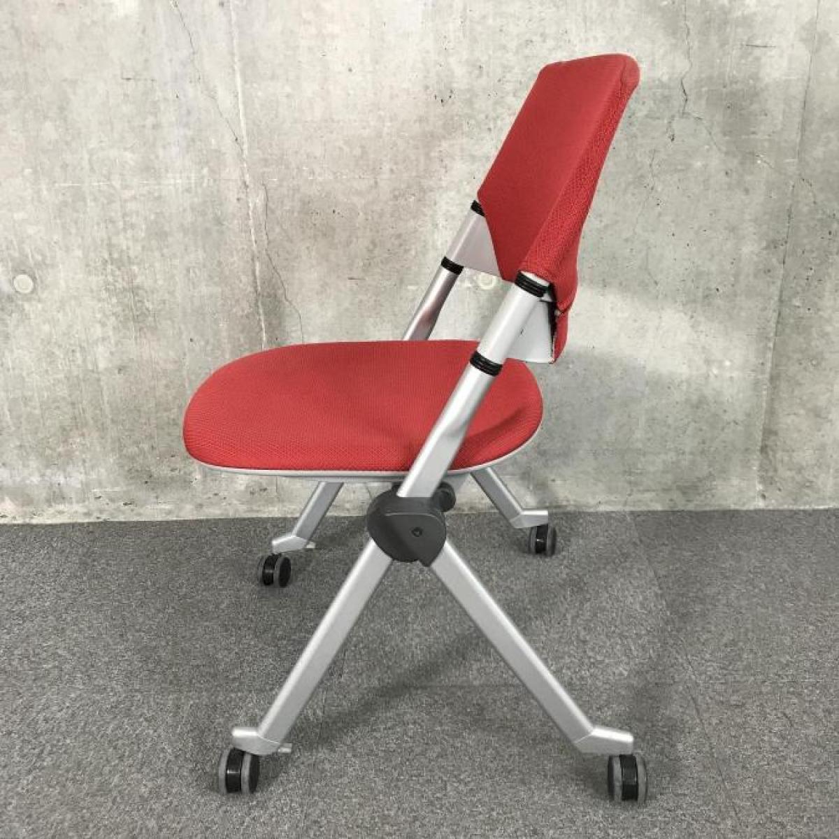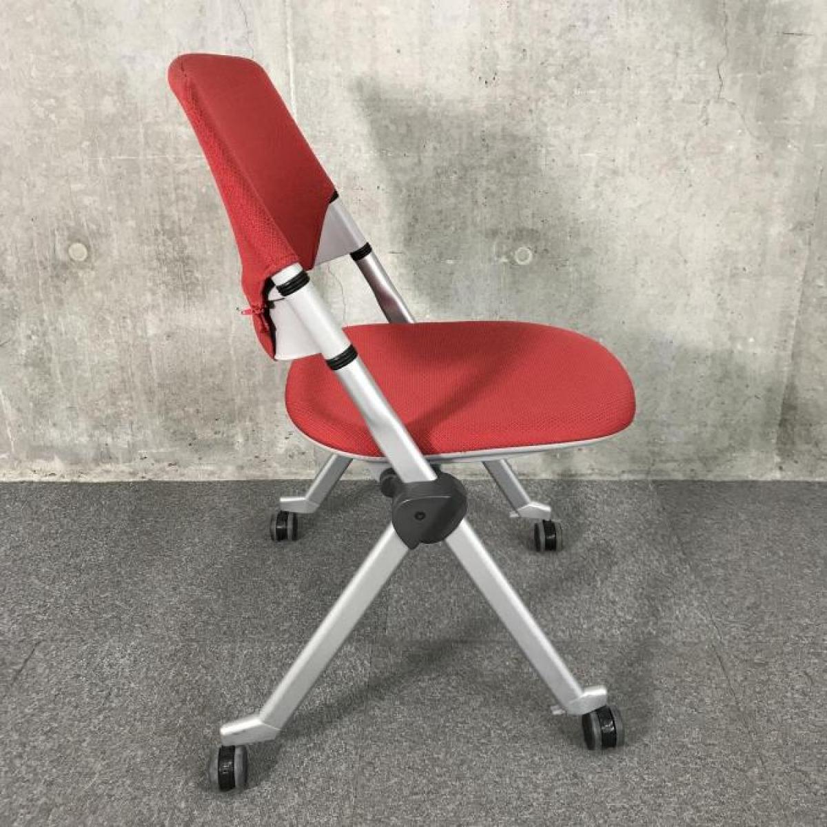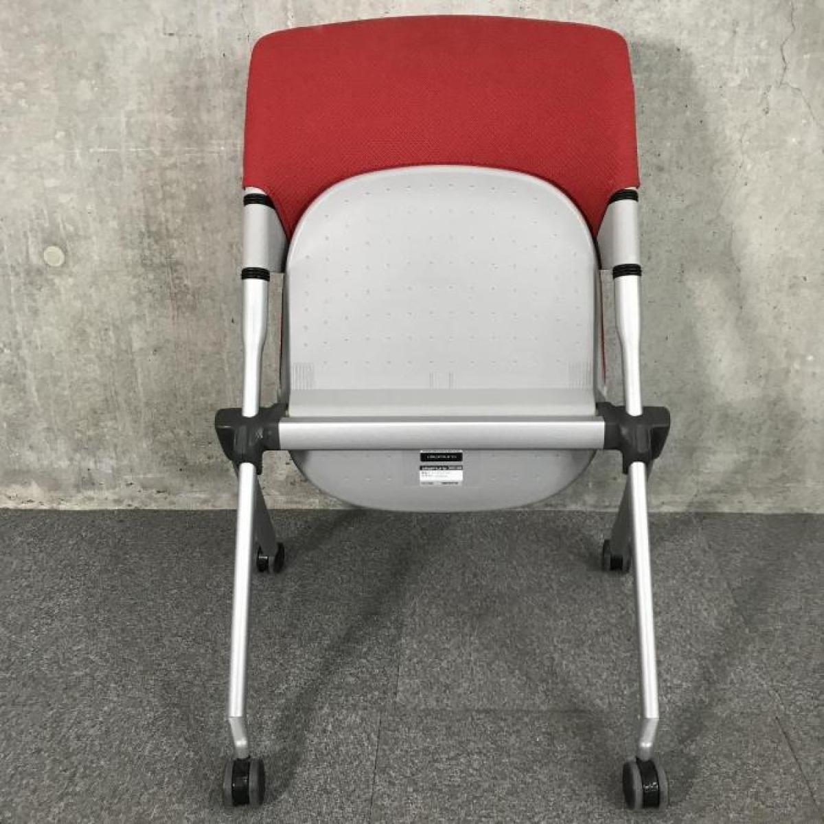 【在庫入替セール】【3脚限定】【会議室におすすめ!折り畳んで横に重ねて収納可能!】■オカムラ(okamura)製 リータ(LITA) ミーティングチェア ネスティングチェア 会議用 ■キャスター付 ■レッド【移動も楽々!】- 神戸・三宮店