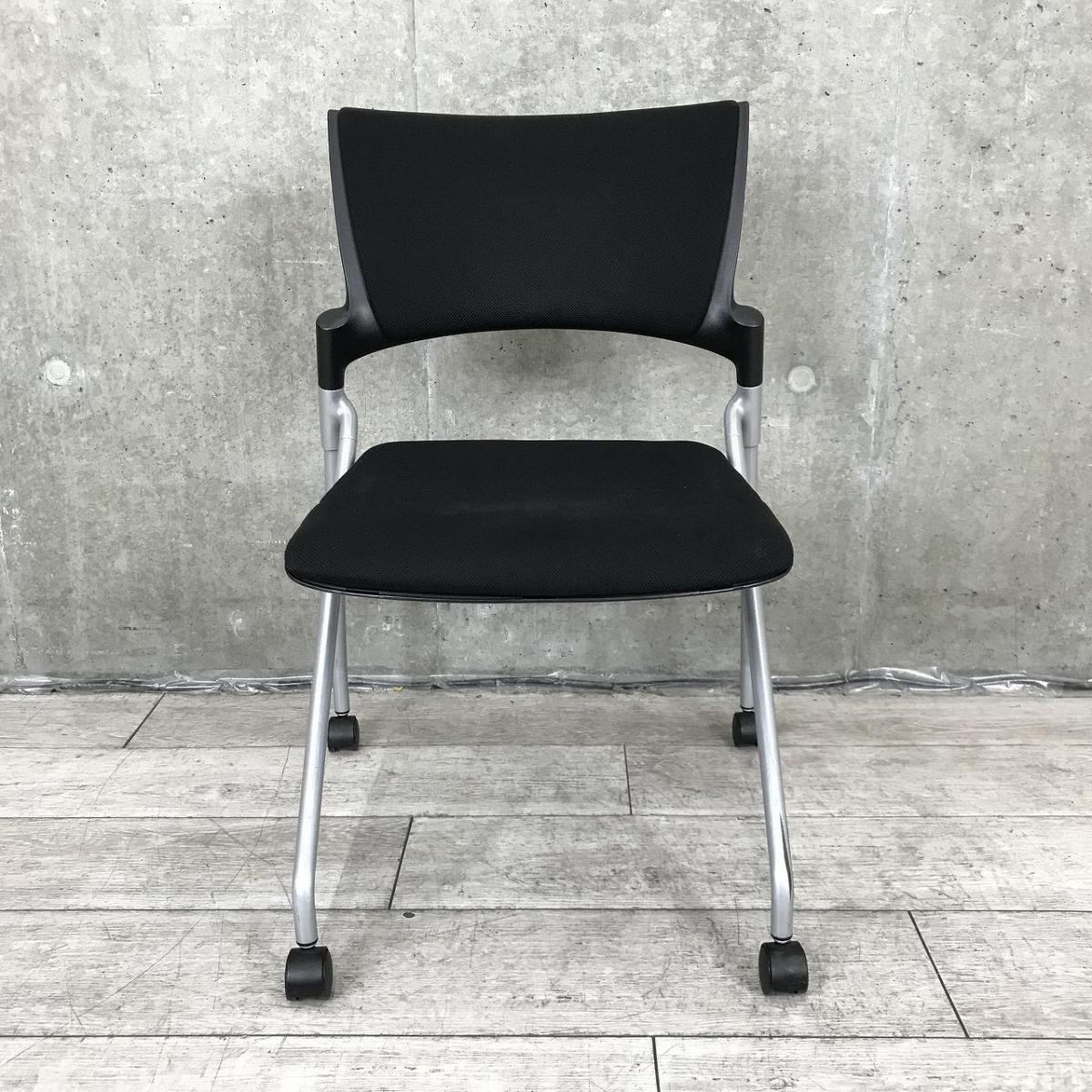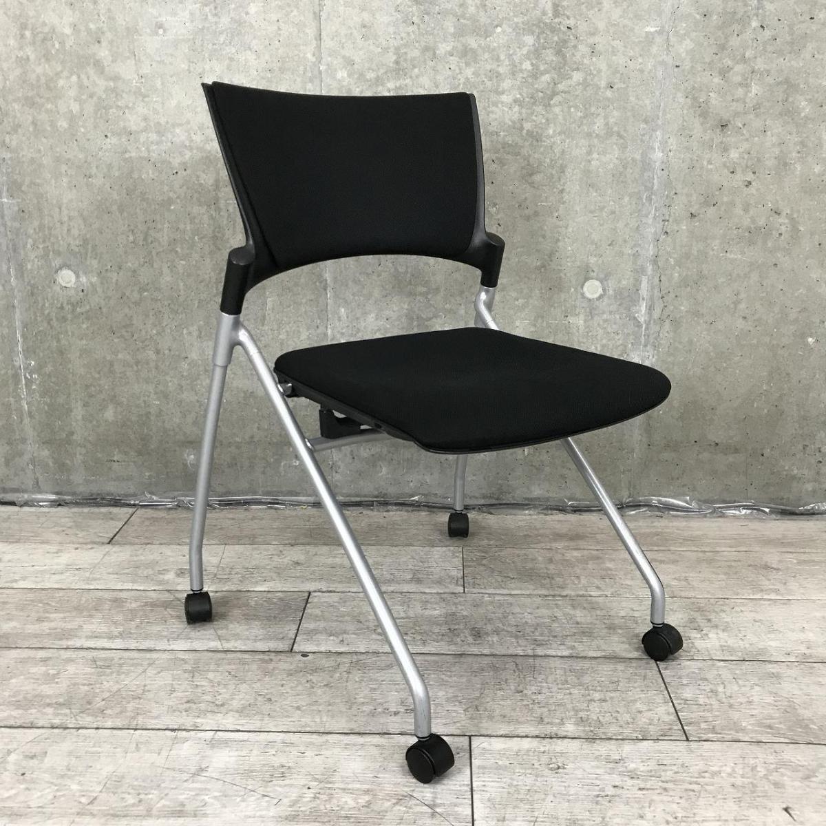 【関東倉庫在庫品】【コンパクトな収納が可能なチェアで設置・撤去が便利!】■イトーキ製 マノス ネスティングチェア ■ブラック【弊社使用欄:A00978813】【ECBMC】- 在庫数