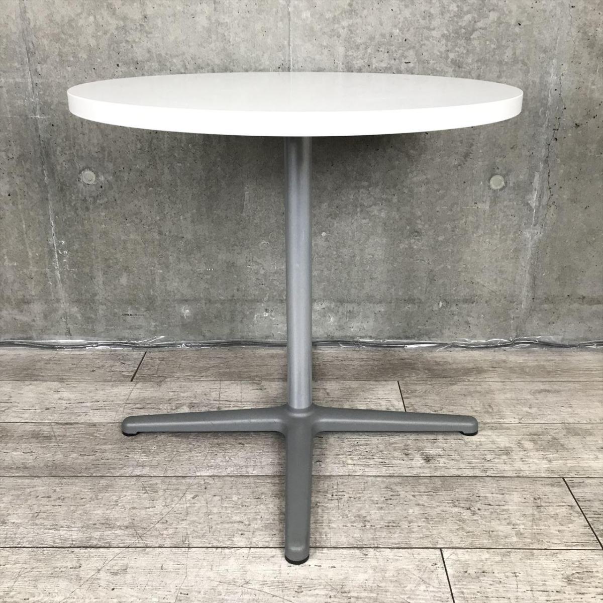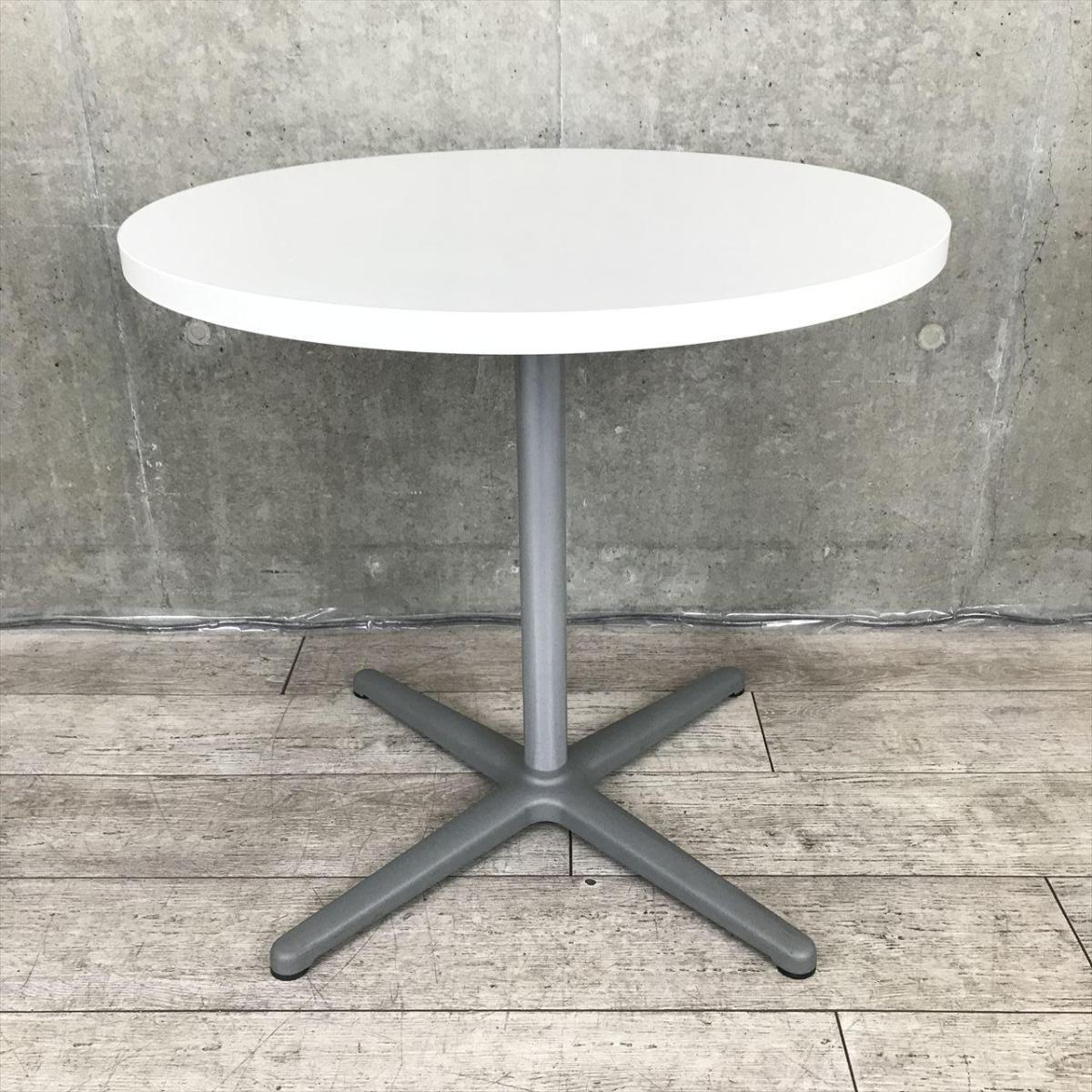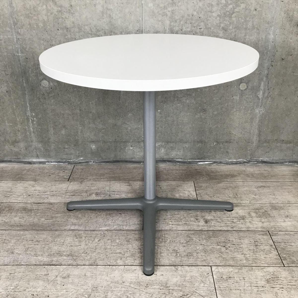 【会議用としても!休憩室用としても!ちょっとした作業テーブルとしても人気の高い万能な丸テーブルが入荷!】■パブリック製 丸テーブル 会議用 リフレッシュスペース W750㎜ ■天板:ホワイト/脚:シルバー- 足立・葛飾店