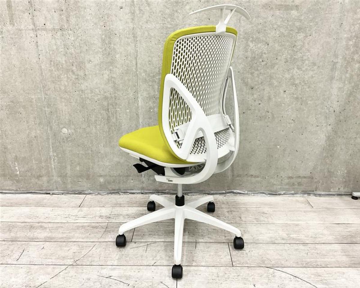 【在庫入替セール】【14脚大量入荷】【人間工学に基づいたS字曲線!理想的な座り心地を追求した大人気チェア!】■イナバ(Inaba) イエラチェア(yera) 肘無し ハイバック ■背面クッションタイプ ■ランバーサポート付 ■グリーン×ホワイトシェル ■ハンガー付【T10】