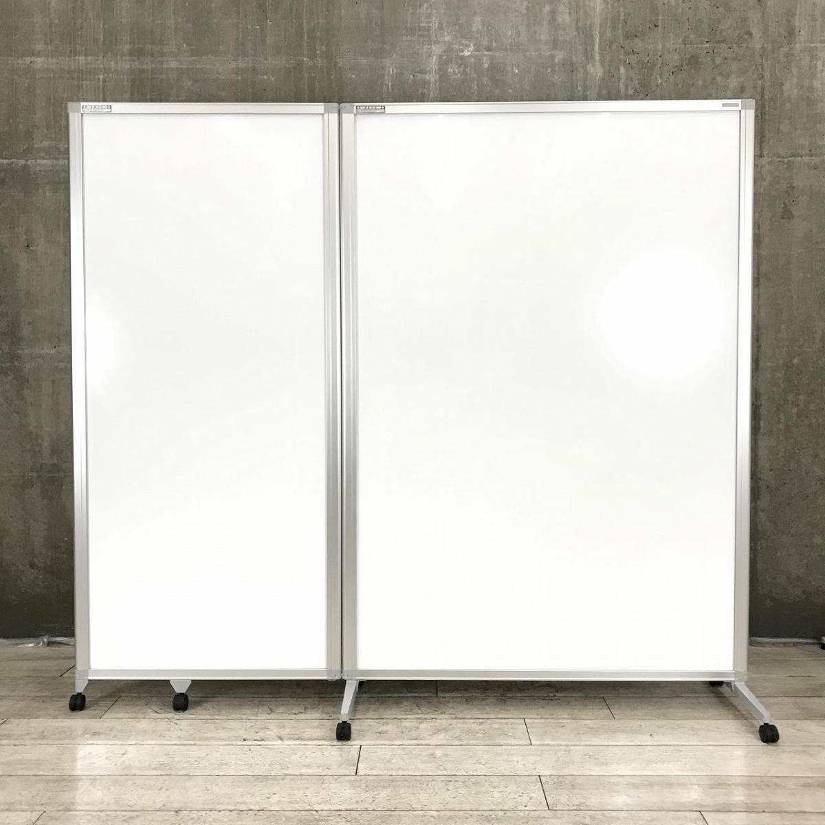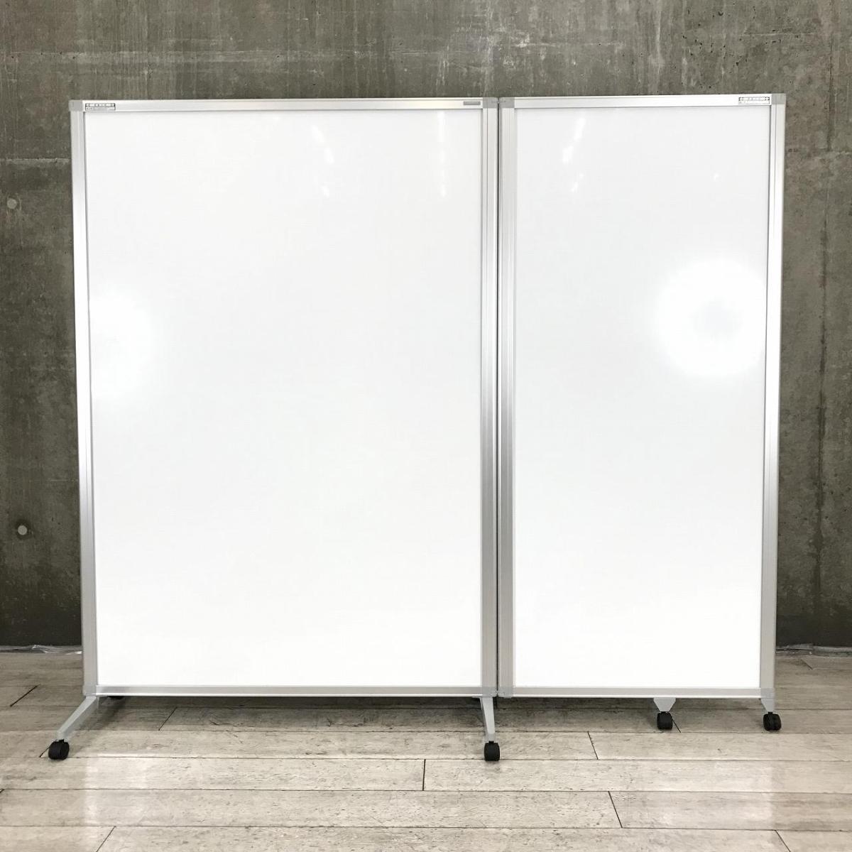 【アイデア広がる大きなボード!】■オカムラ製 2連ホワイドボードパーティション W2015(1215+800)×H1800mm キャスター付【折りたたみ式】【2つ折りパネル】【在庫入替セール品!】【ABW】- 川崎店