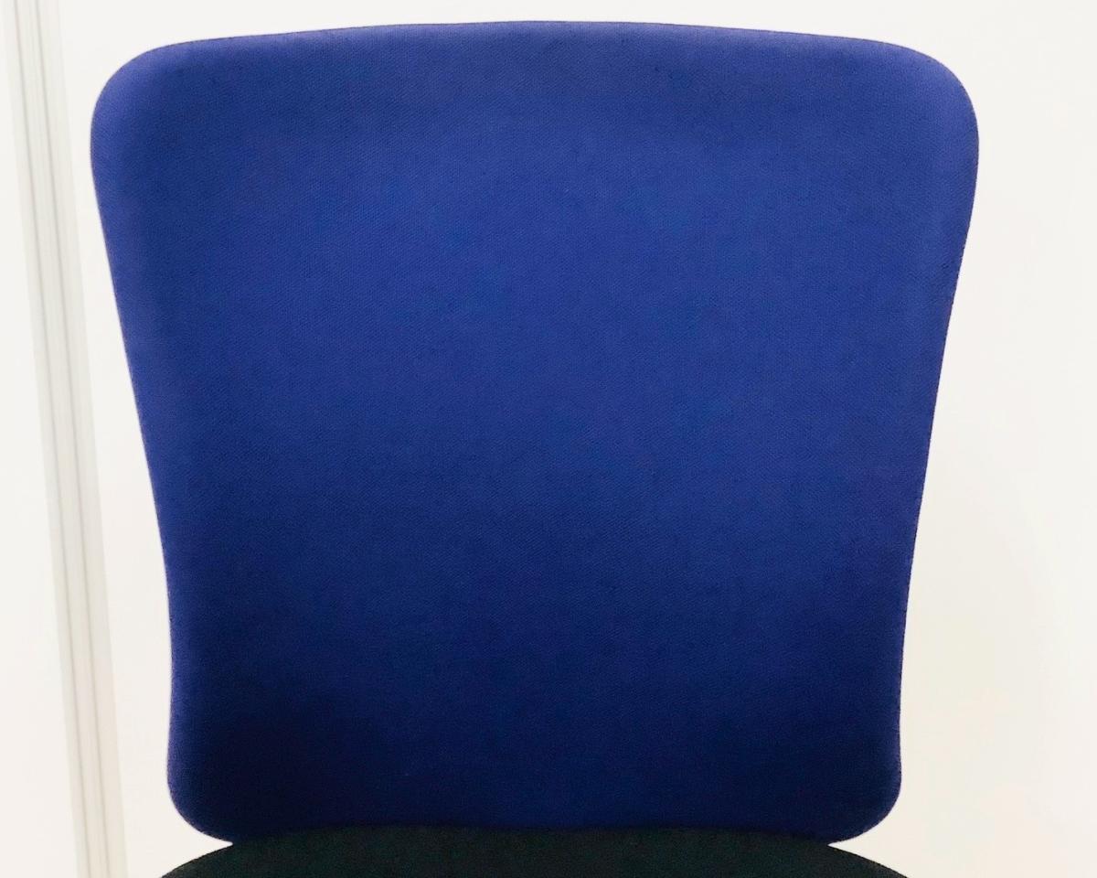 【座面使用感の汚れあり】イナバ製 バルチェシリーズ ブルー×ブラック セルフアジャストメント機構採用であらゆるワークシーンにフィット! スタンダードなデザインで座りやすい 肘無しハイバックチェア!!中古 肘無し ブルー 【K】