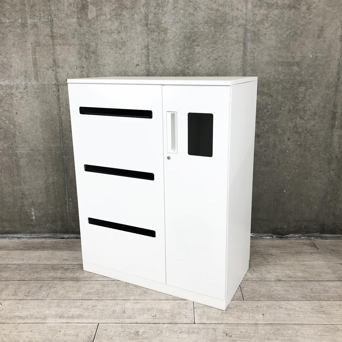 【中古品では珍しい!コクヨ製・3段雑誌架タイプ!】【雑誌・パンフレッド等々、扉を開けると収納でき、オフィスの雰囲気を変えたい方におすすめ!!】■コクヨ(KOKUYO) エディアシリーズ 雑誌架 3段 ローキャビネット ■本体ホワイト【2506】弊社使用欄【A01018642】