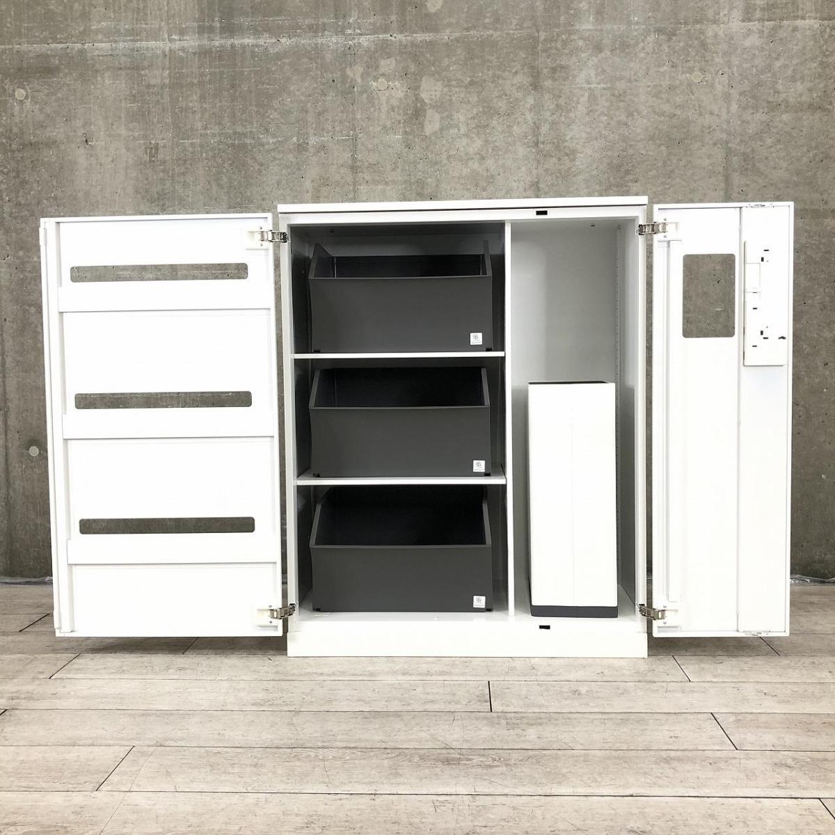 ■コクヨ製 エディアシリーズ 両開きトラッシュユニット(分別ダストボックス) ホワイト